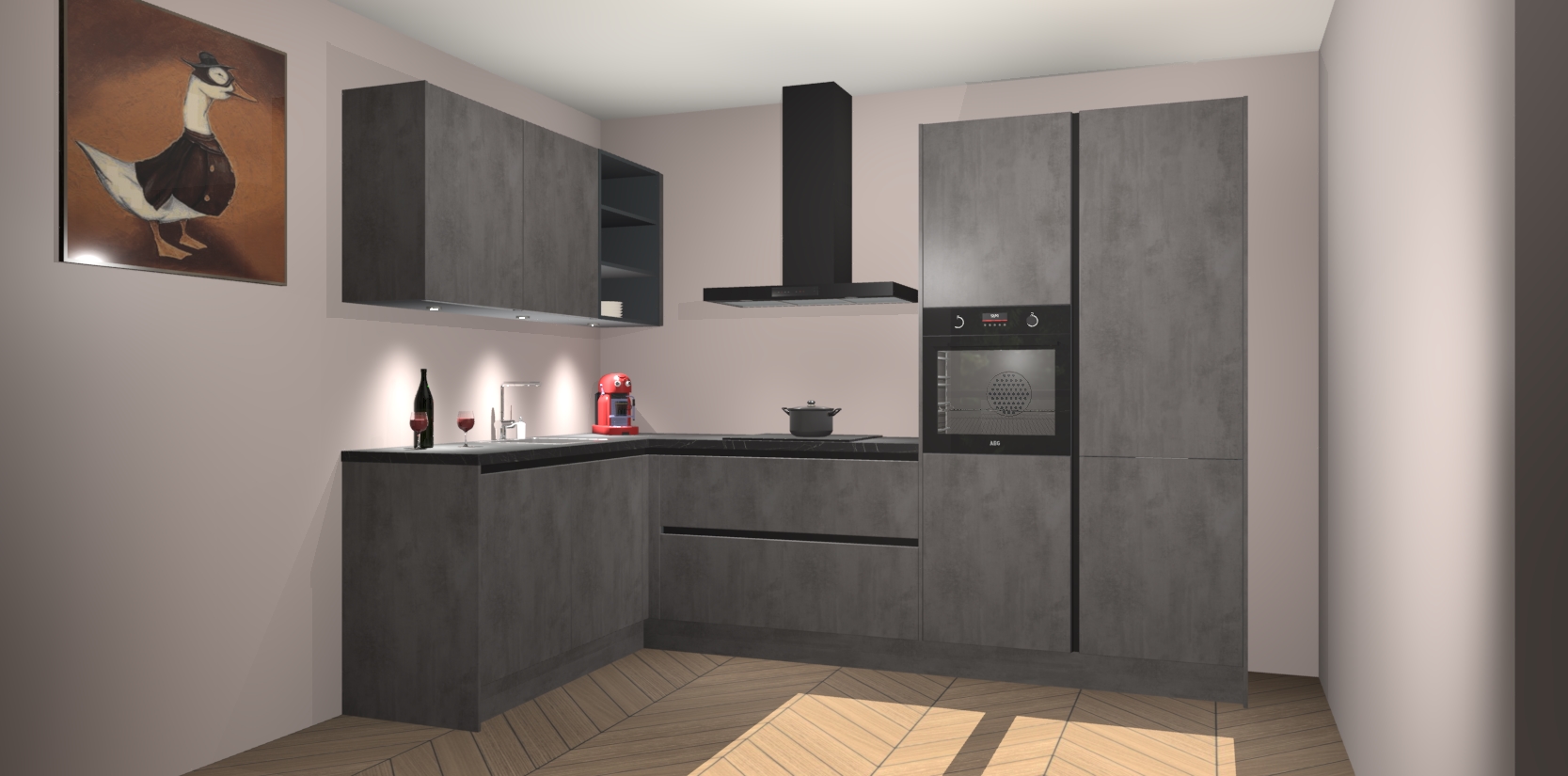 De Beton Antraciet greeploze keuken Cognac is een adembenemend ontwerp met een modern en tijdloos uiterlijk. Deze luxe keuken straalt echt aristocratisch uit, waardoor uw koken plezieriger zal worden! Het prachtige design begint bij de hoekkeuken, wat perfect past bij elk type interieur. Bovendien bevat deze hoogwaardige set vijf inbouwapparaten - van oven tot koelkast - die via bestelling naar AEG geüpgraded kunnen worden!