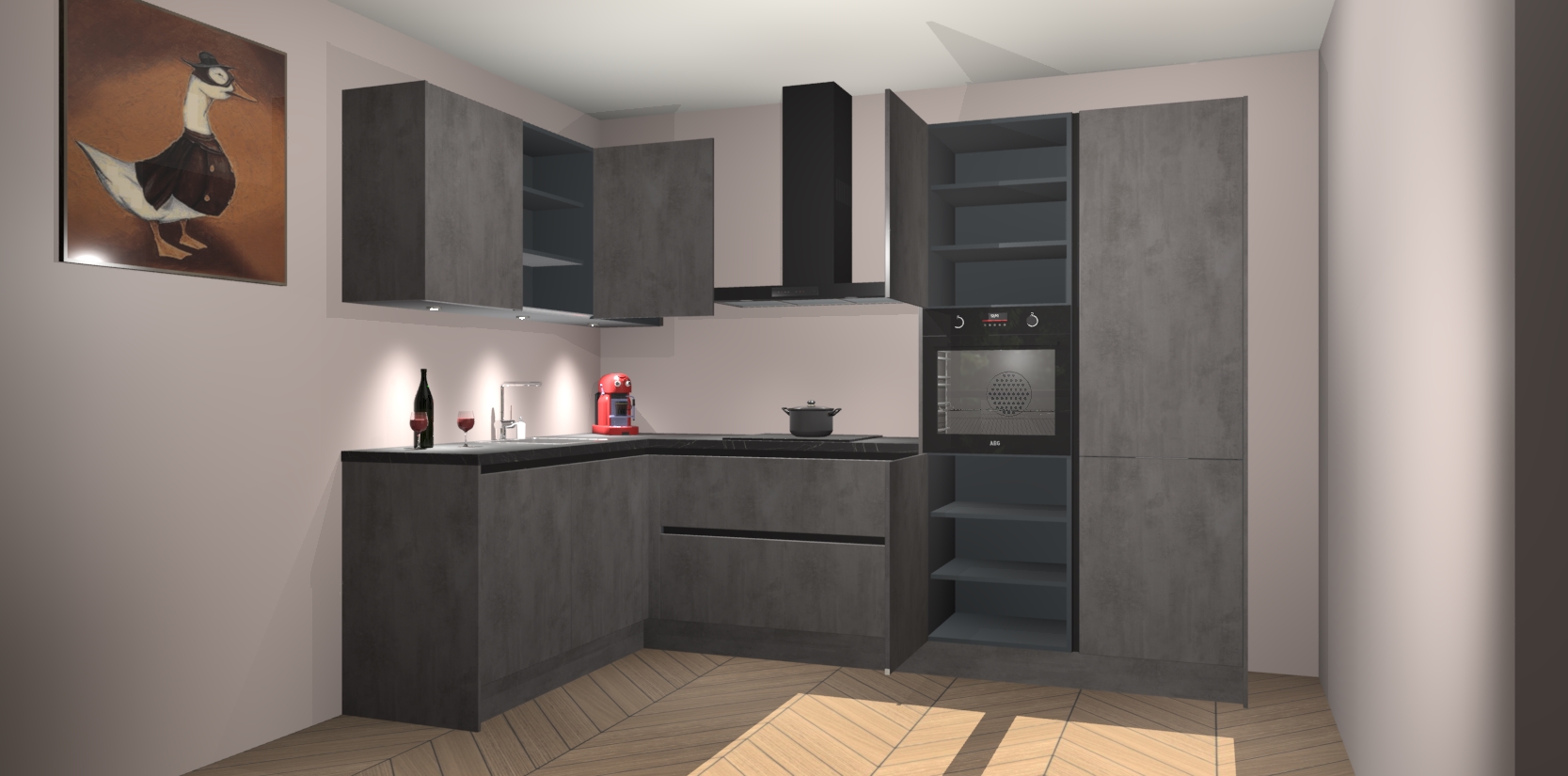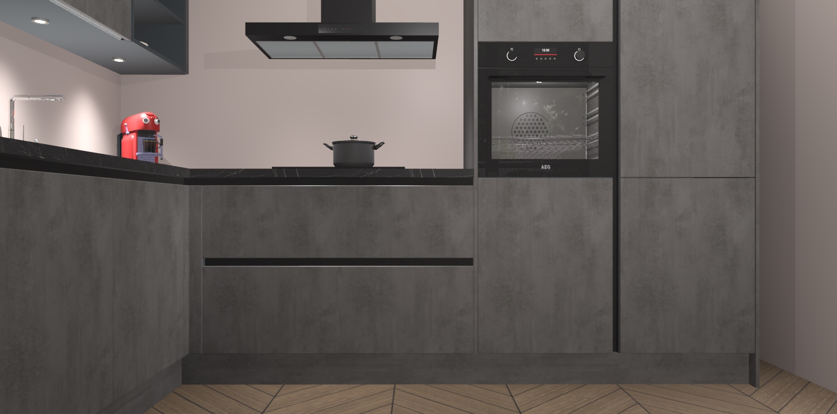 De Beton Antraciet greeploze keuken Cognac gaat alleen maar om de beste keukenervaring. Kies gewoon de beste apparatuur en ongeëvenaarde Duitse constructie die u thuis wilt hebben en verander uw huiskamer hartelijkheid meteen in professionaliteit. Laat de toon weten dat u gemakkelijk kan genieten van alle luxe die u verdiend? Bestel nu de Beton Antraciet greeploze keuken Cognac voor bij u thuis!