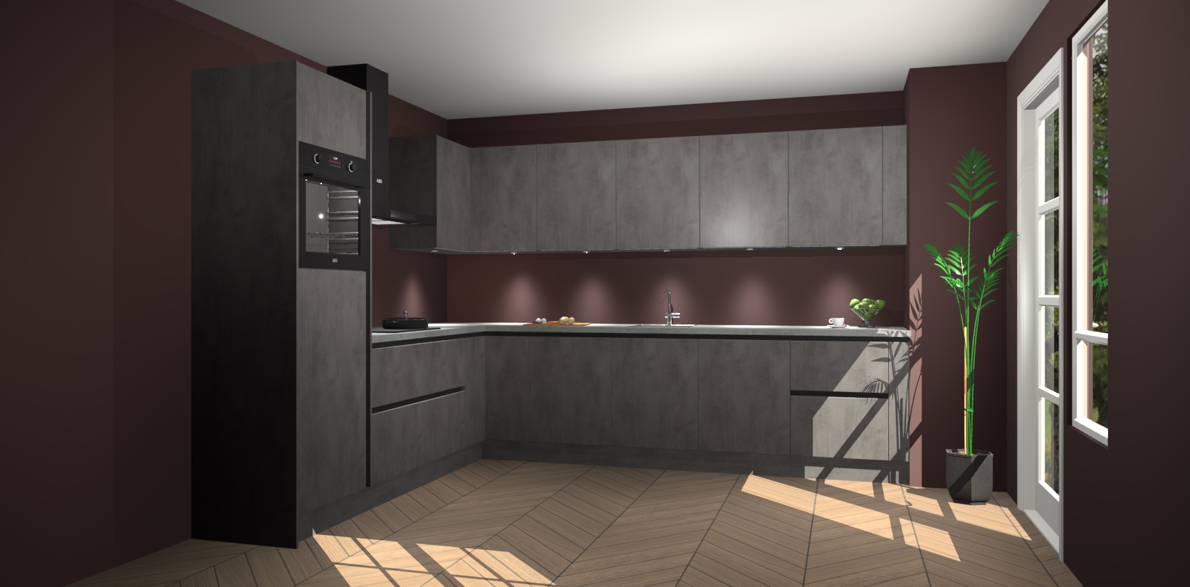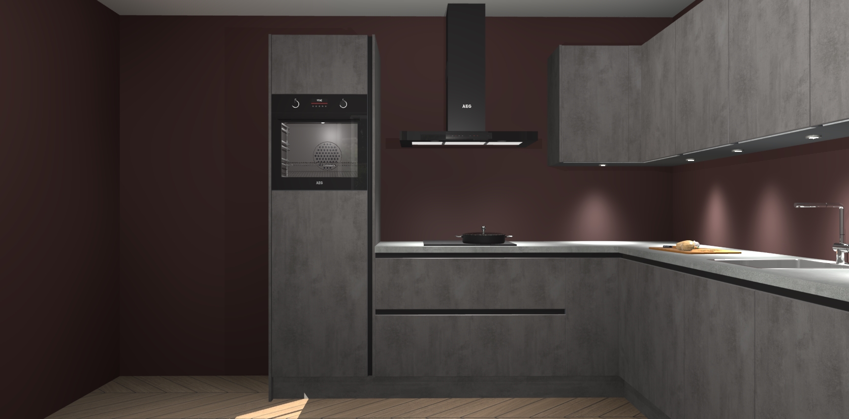 De Beton Antraciet greeploze keuken Debar is uitgerust met vijf inbouwapparaten die elke kooktaak handig en efficiënt maken. Een oven, inductiekookplaat, afzuigkap, vaatwasser en koelkast zijn standaard, maar kunnen na bestelling eenvoudig worden geupgrade naar AEG. Profiteer vervolgens van de softclose deuren voor snelle toegang en geruisloze toegang.
