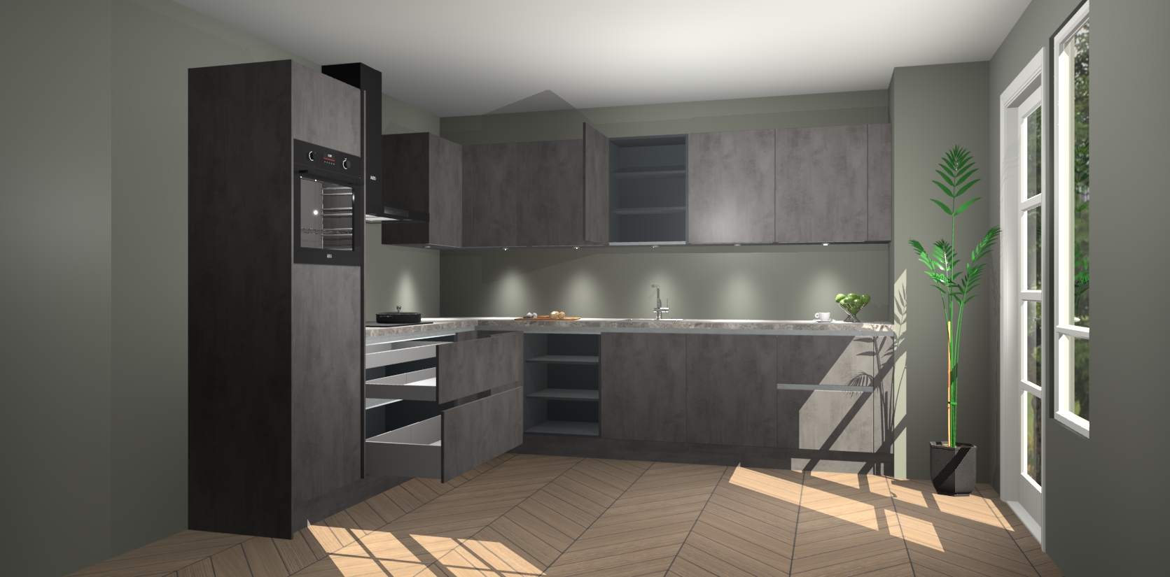 Als u op zoek bent naar de perfecte keuken om uw huis mee op te fleuren, zoek dan niet verder dan de Beton Antraciet greeploze keuken Debar. Deze prachtige hoekkeuken straalt warmte en luxe uit met een modern maar geraffineerd design. Maak u nooit meer zorgen of u wel genoeg opbergruimte heeft; dit meubel biedt voldoende opbergruimte om al uw keukenbenodigdheden binnen handbereik te houden.