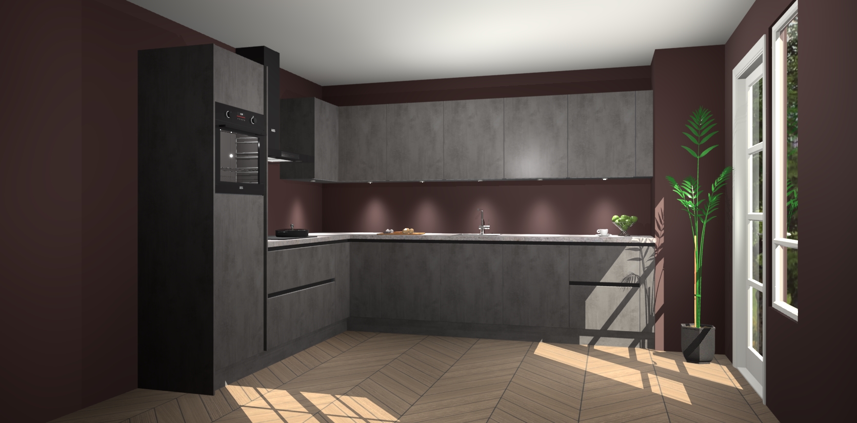 De Beton Antraciet greeploze keuken Debar is uitgerust met vijf inbouwapparaten die elke kooktaak handig en efficiënt maken. Een oven, inductiekookplaat, afzuigkap, vaatwasser en koelkast zijn standaard, maar kunnen na bestelling eenvoudig worden geupgrade naar AEG. Profiteer vervolgens van de softclose deuren voor snelle toegang en geruisloze toegang.