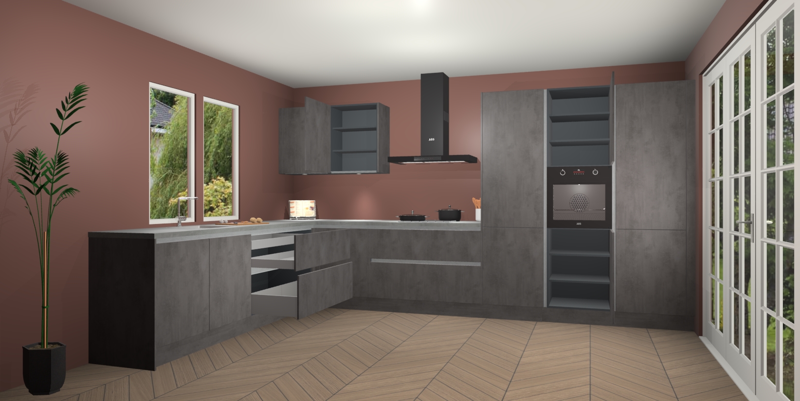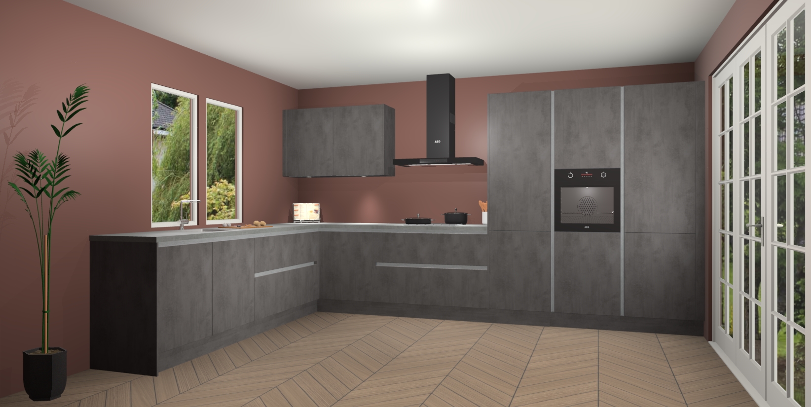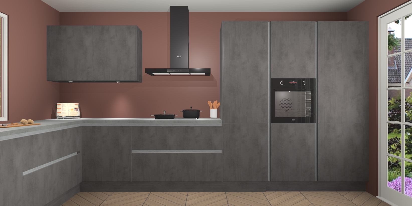 Heeft u nog apparatuur nodig? Geen probleem: de Beton Antraciet greeploze keuken Debrecen bevat vijf ingebouwde apparaten - een oven, inductiekookplaat, afzuigkap, vaatwasser en koelkast - die gemakkelijk kunnen worden bijgewerkt naar AEG na bestelling. En als dat nog niet genoeg is; onze kasten worden pre-geassembleerd geleverd en zijn verkrijgbaar tegen een vastgeroeste lage prijs! U hoeft nooit meer te zoeken naar goede kwaliteit en service want onze producten hebben echt Duitse kwaliteit.