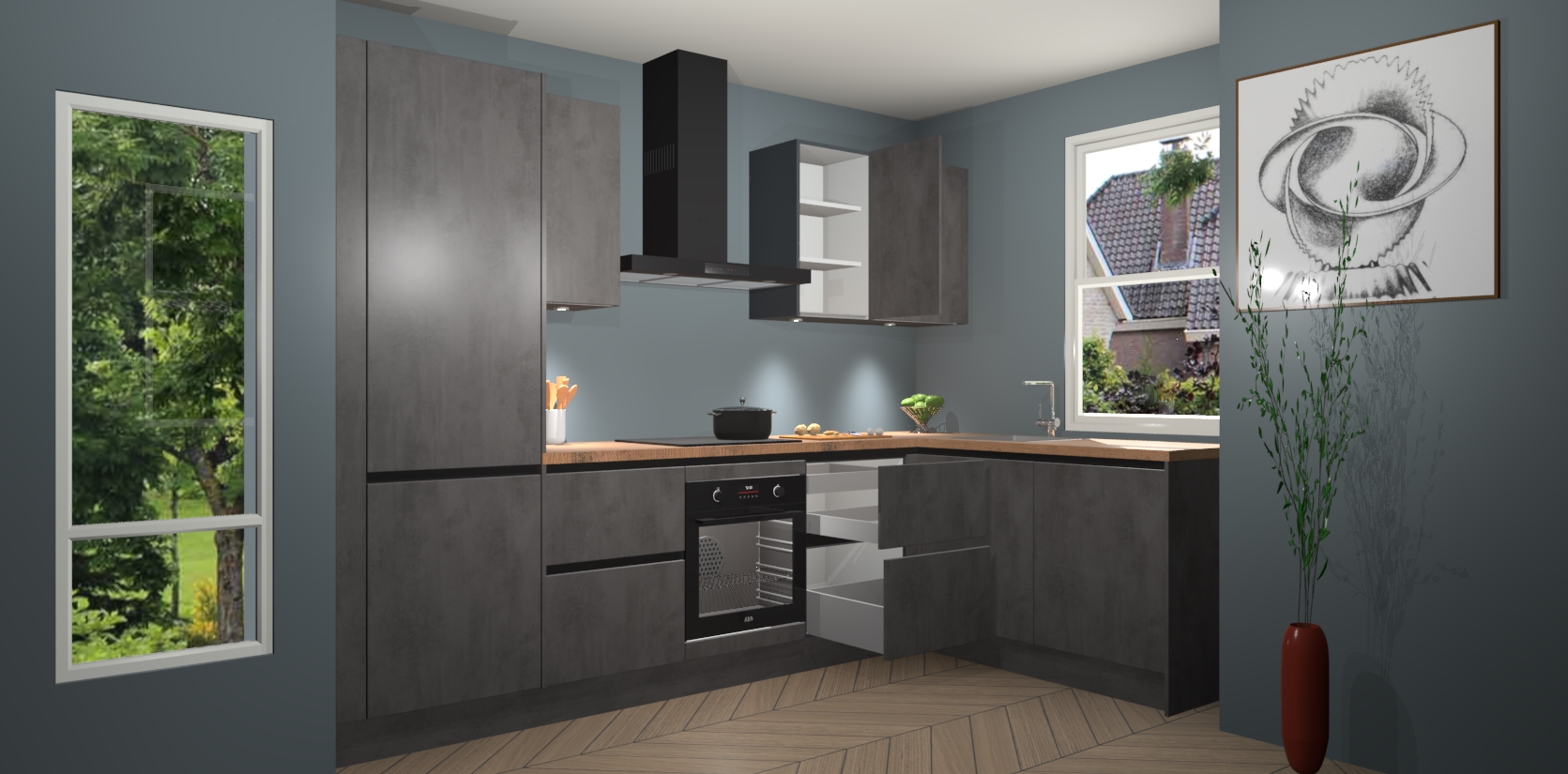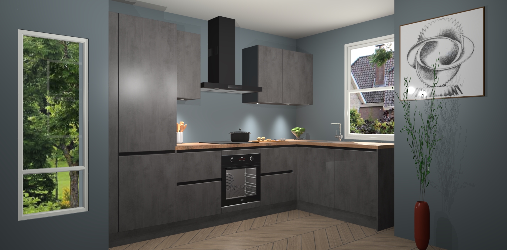 De Beton Antraciet greeploze keuken Geneve is precies wat u nodig heeft als u op zoek bent naar modern design, versmolten met tijdloze schoonheid. De strakke afwerking voegt klasse toe terwijl het toch een uitnodigende sfeer behoudt; zeker om zowel gasten als uzelf te inspireren om in stijl te gaan koken! En nog beter, het zal uw budget niet breken - dus waarom wachten? Met de Beton Antraciet greeploze keuken Geneve bent u verzekerd van kwaliteit zonder in te leveren op de prijs!