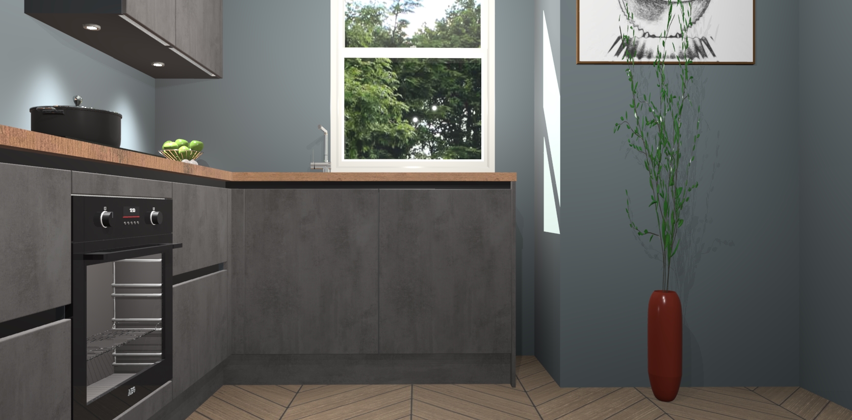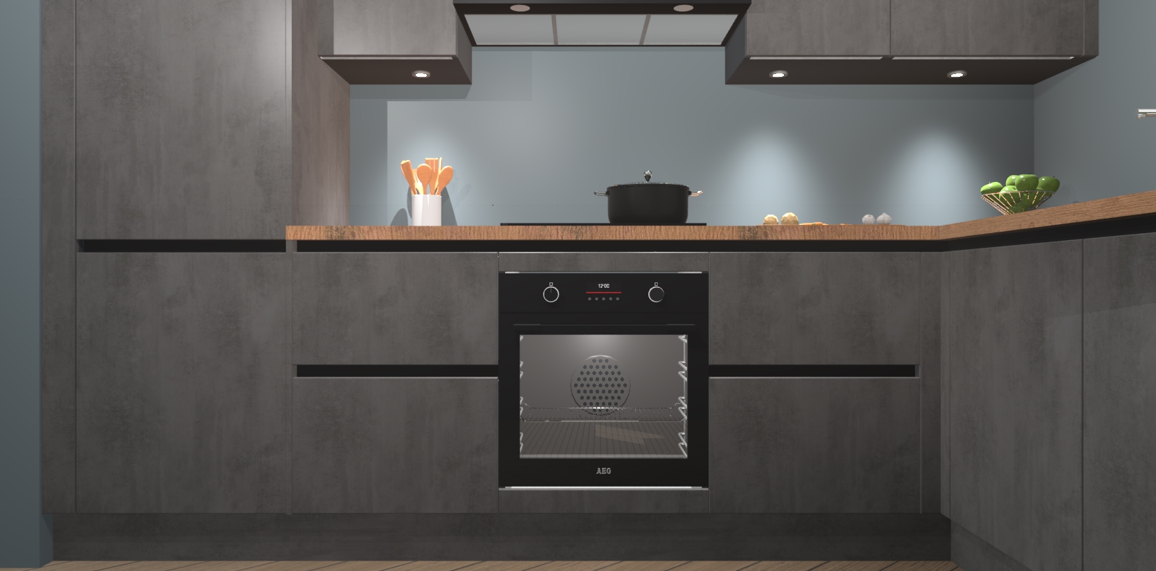De Beton Antraciet greeploze keuken Geneve is uitgerust met 5 inbouwapparaten - een oven, inductiekookplaat, afzuigkap, vaatwasser en koelkast - voor al uw kook- en bewaarbehoeftes. U kunt deze apparaten desgewenst eenvoudig upgraden naar AEG of de oven omruilen voor een combimagnetron na het plaatsen van uw bestelling. En met de soft close deuren, voldoende opbergruimte en kasten die voorgemonteerd worden geleverd, bent u in een mum van tijd klaar om heerlijke maaltijden te bereiden!