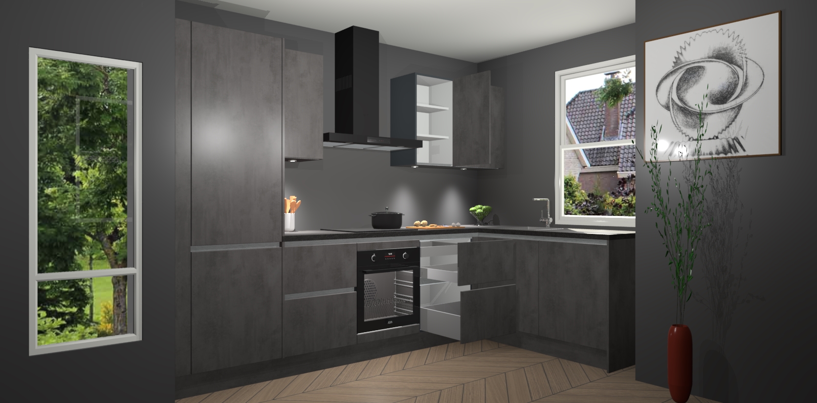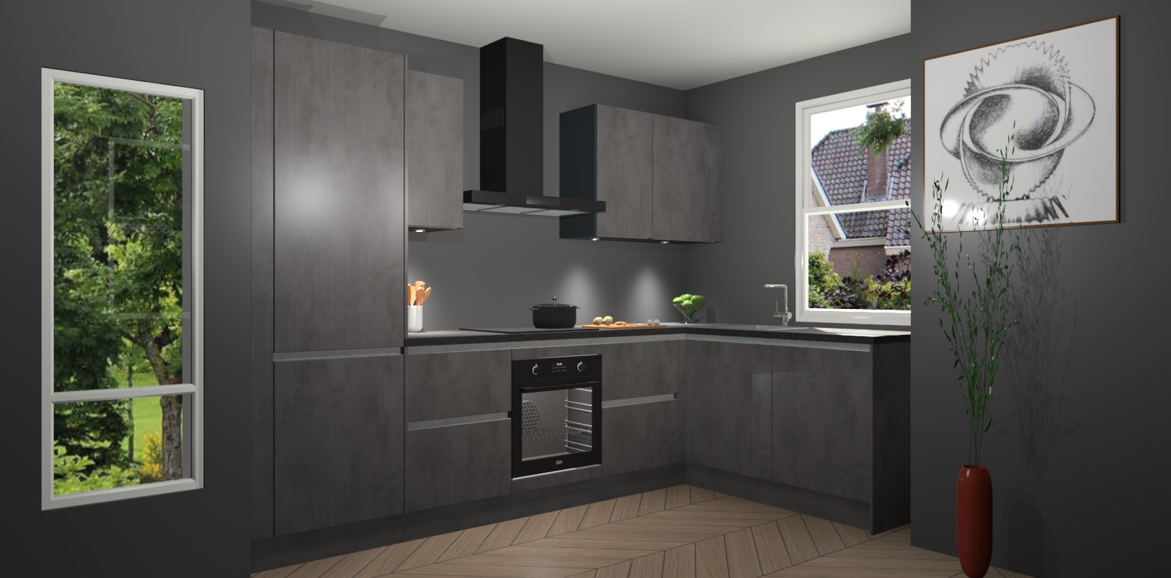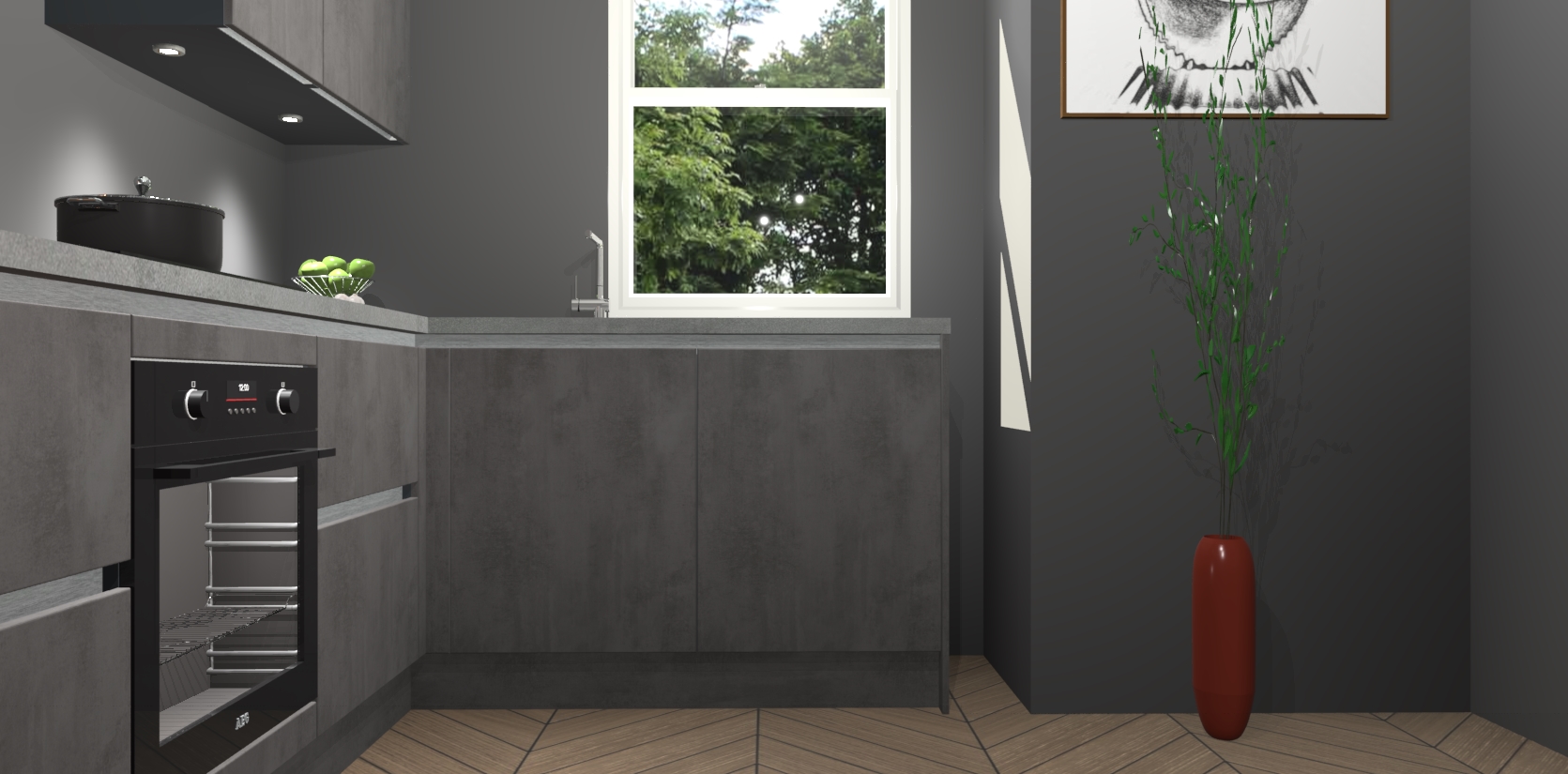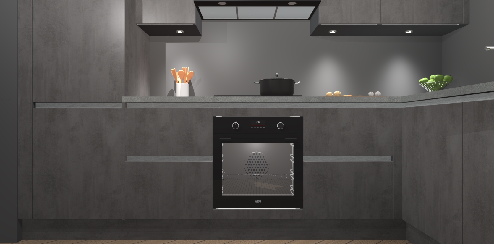 De Beton Antraciet greeploze keuken Geneve is uitgerust met 5 inbouwapparaten - een oven, inductiekookplaat, afzuigkap, vaatwasser en koelkast - voor al uw kook- en bewaarbehoeftes. U kunt deze apparaten desgewenst eenvoudig upgraden naar AEG of de oven omruilen voor een combimagnetron na het plaatsen van uw bestelling. En met de soft close deuren, voldoende opbergruimte en kasten die voorgemonteerd worden geleverd, bent u in een mum van tijd klaar om heerlijke maaltijden te bereiden!