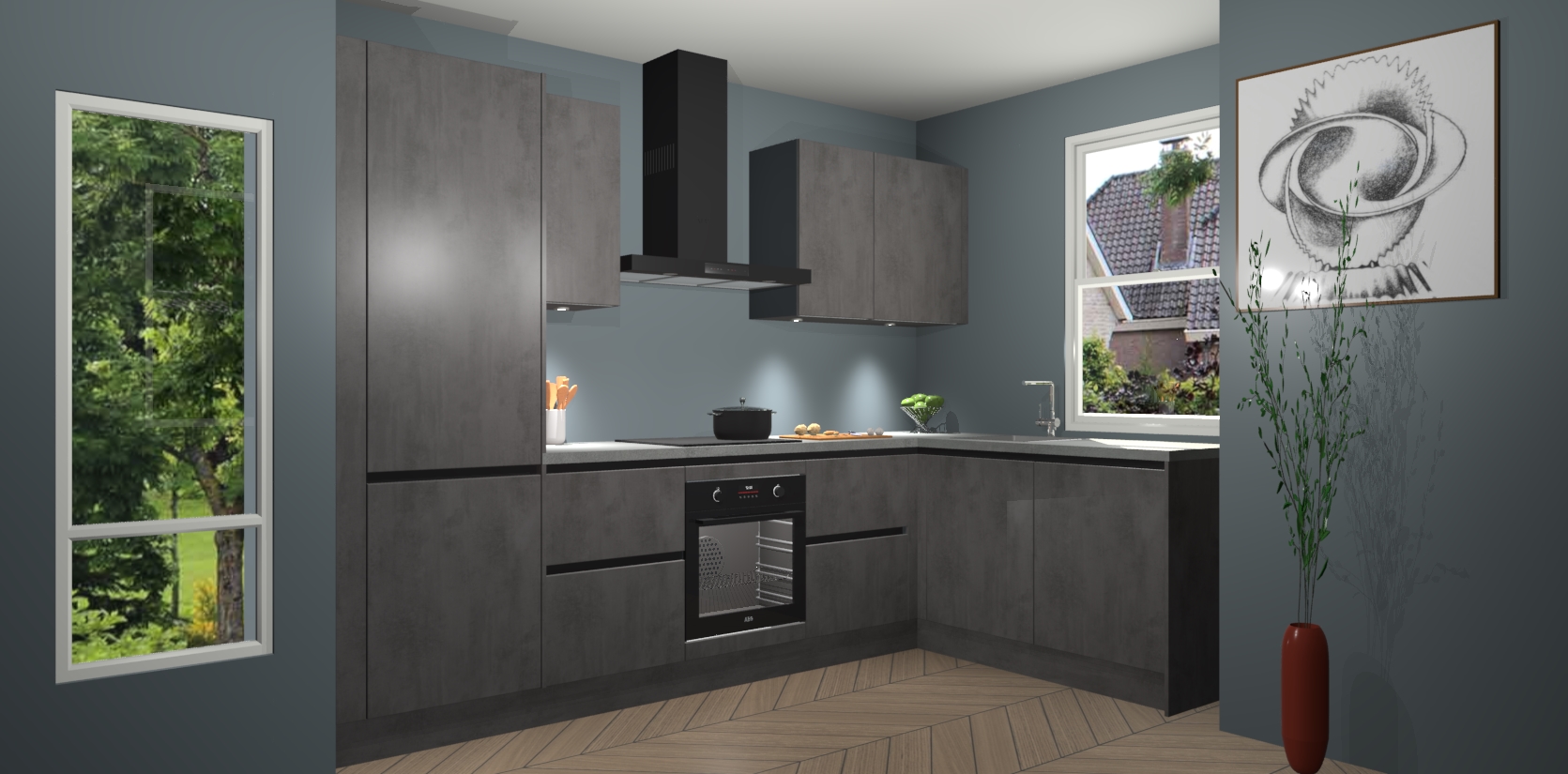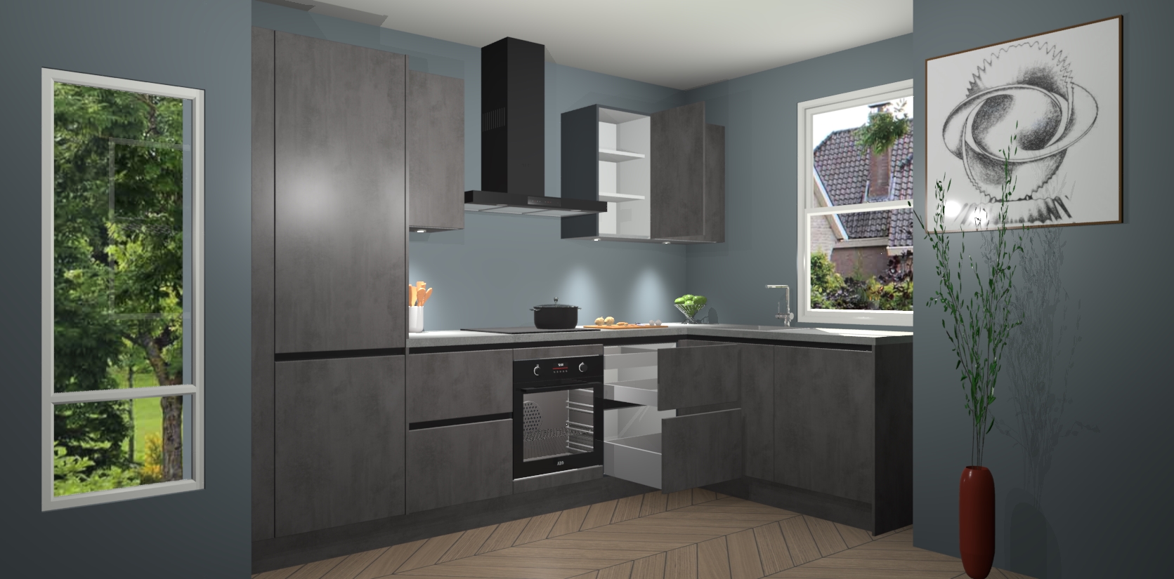 De Beton Antraciet greeploze keuken Geneve is precies wat u nodig heeft als u op zoek bent naar modern design, versmolten met tijdloze schoonheid. De strakke afwerking voegt klasse toe terwijl het toch een uitnodigende sfeer behoudt; zeker om zowel gasten als uzelf te inspireren om in stijl te gaan koken! En nog beter, het zal uw budget niet breken - dus waarom wachten? Met de Beton Antraciet greeploze keuken Geneve bent u verzekerd van kwaliteit zonder in te leveren op de prijs!
