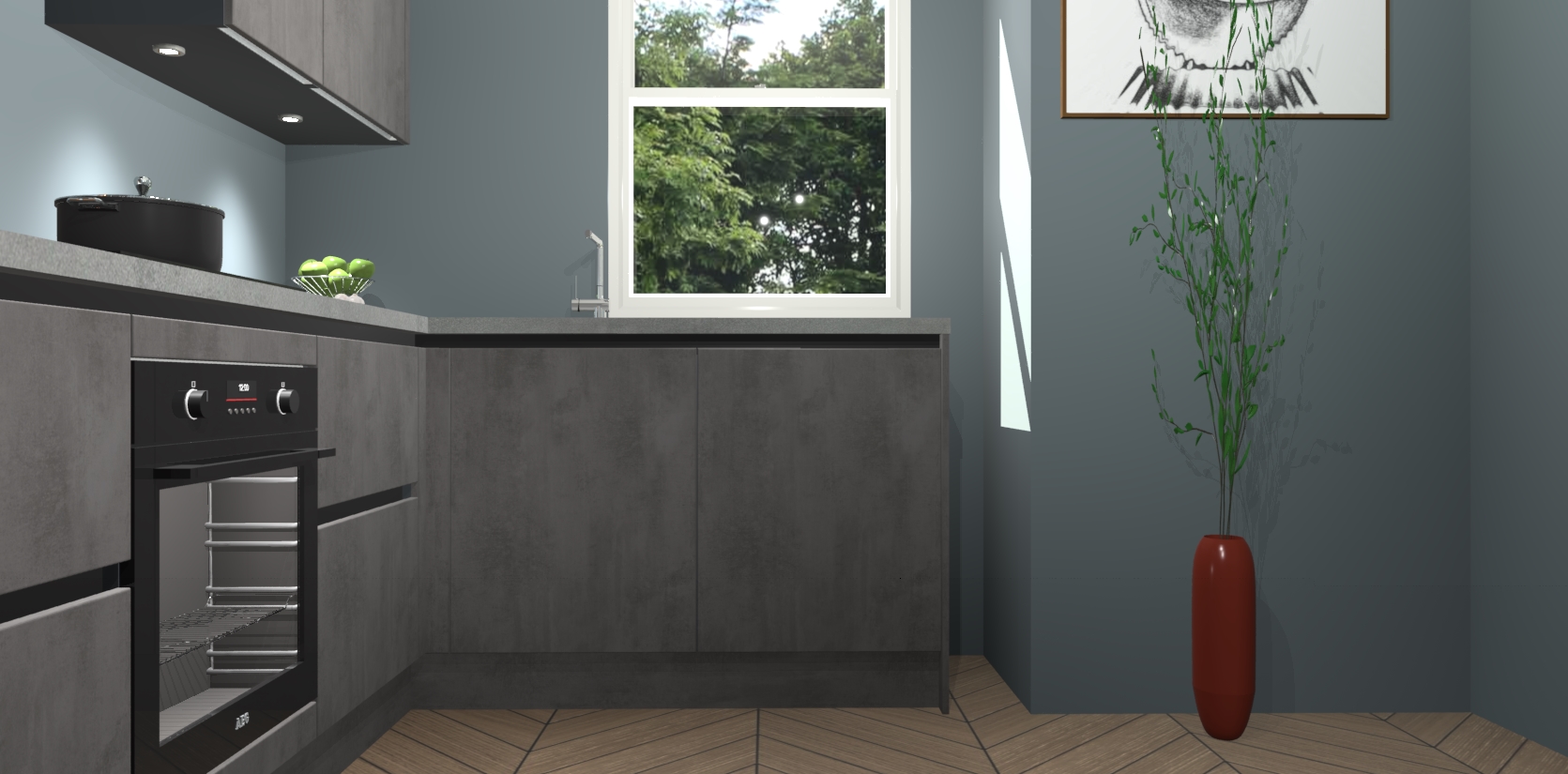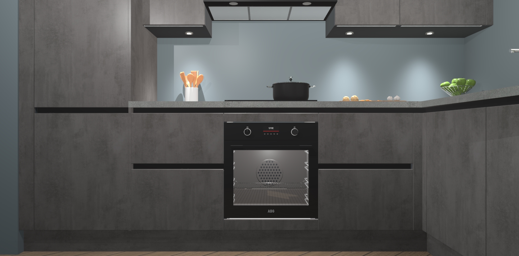 De Beton Antraciet greeploze keuken Geneve is uitgerust met 5 inbouwapparaten - een oven, inductiekookplaat, afzuigkap, vaatwasser en koelkast - voor al uw kook- en bewaarbehoeftes. U kunt deze apparaten desgewenst eenvoudig upgraden naar AEG of de oven omruilen voor een combimagnetron na het plaatsen van uw bestelling. En met de soft close deuren, voldoende opbergruimte en kasten die voorgemonteerd worden geleverd, bent u in een mum van tijd klaar om heerlijke maaltijden te bereiden!