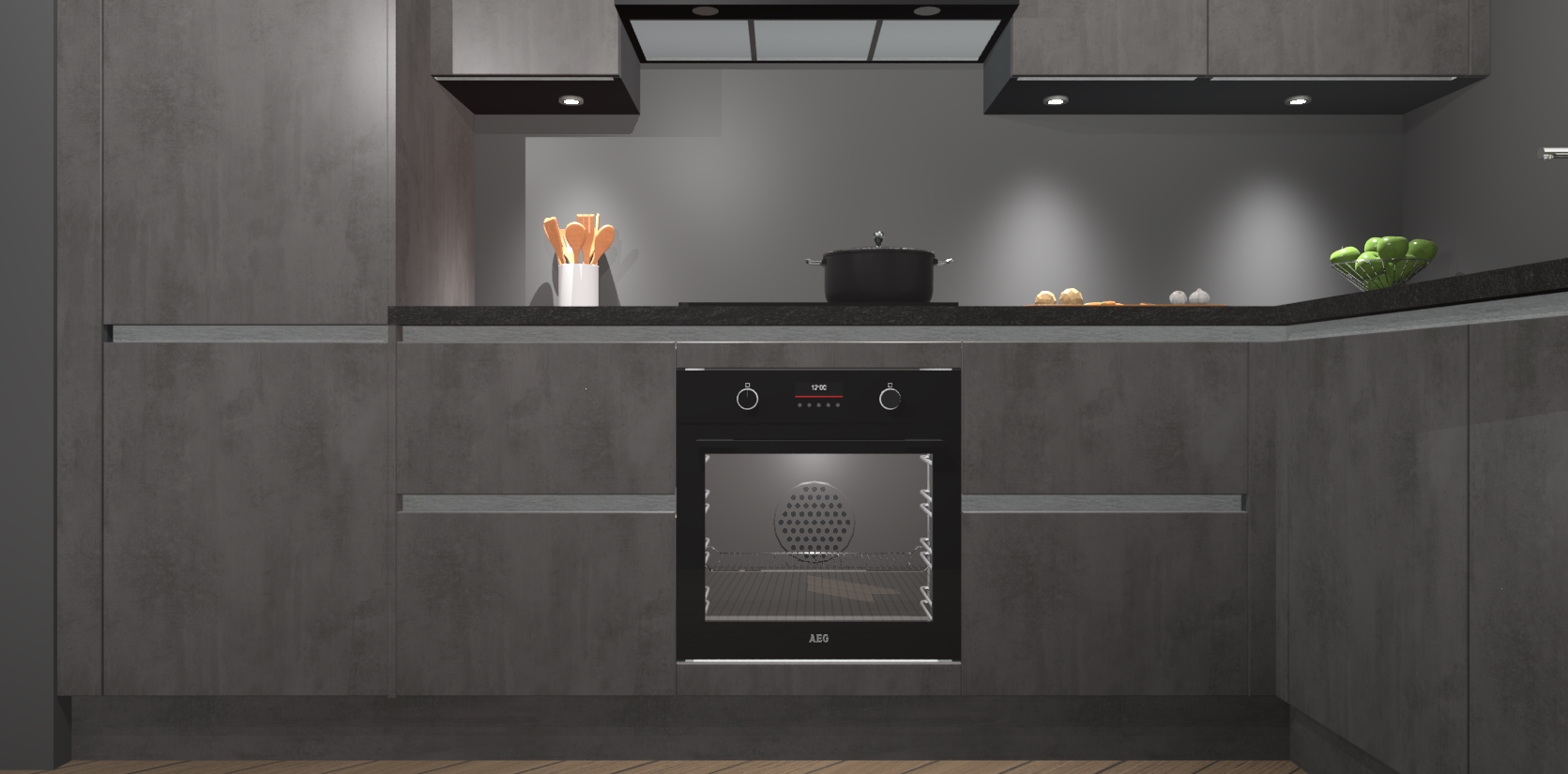 De Beton Antraciet greeploze keuken Geneve is uitgerust met 5 inbouwapparaten - een oven, inductiekookplaat, afzuigkap, vaatwasser en koelkast - voor al uw kook- en bewaarbehoeftes. U kunt deze apparaten desgewenst eenvoudig upgraden naar AEG of de oven omruilen voor een combimagnetron na het plaatsen van uw bestelling. En met de soft close deuren, voldoende opbergruimte en kasten die voorgemonteerd worden geleverd, bent u in een mum van tijd klaar om heerlijke maaltijden te bereiden!