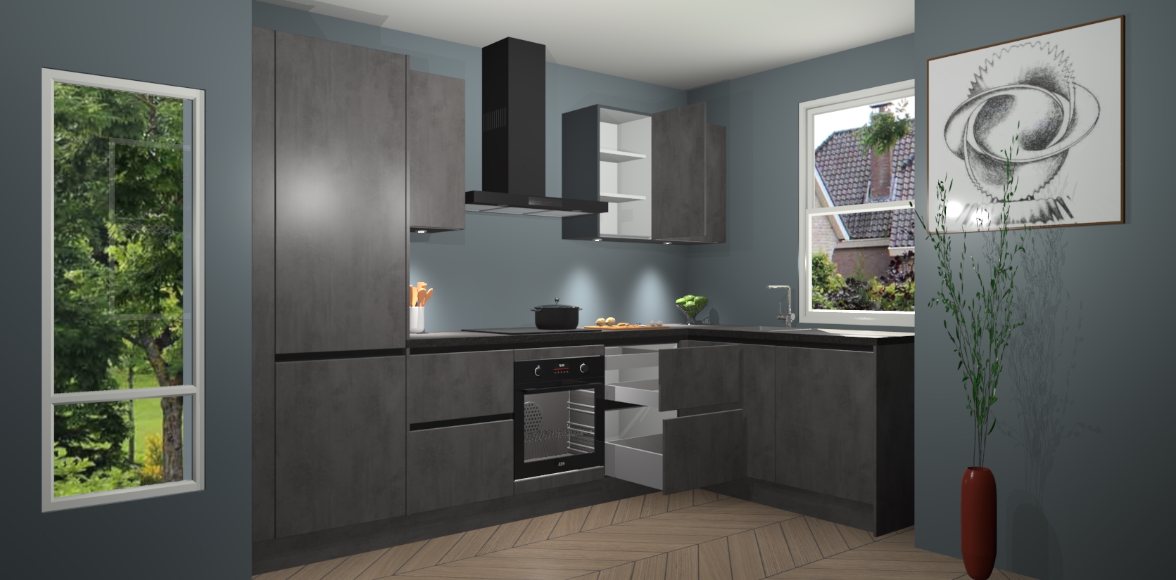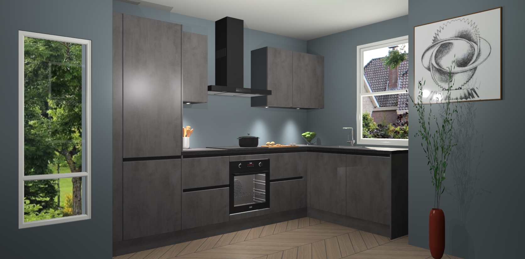 De Beton Antraciet greeploze keuken Geneve is precies wat u nodig heeft als u op zoek bent naar modern design, versmolten met tijdloze schoonheid. De strakke afwerking voegt klasse toe terwijl het toch een uitnodigende sfeer behoudt; zeker om zowel gasten als uzelf te inspireren om in stijl te gaan koken! En nog beter, het zal uw budget niet breken - dus waarom wachten? Met de Beton Antraciet greeploze keuken Geneve bent u verzekerd van kwaliteit zonder in te leveren op de prijs!