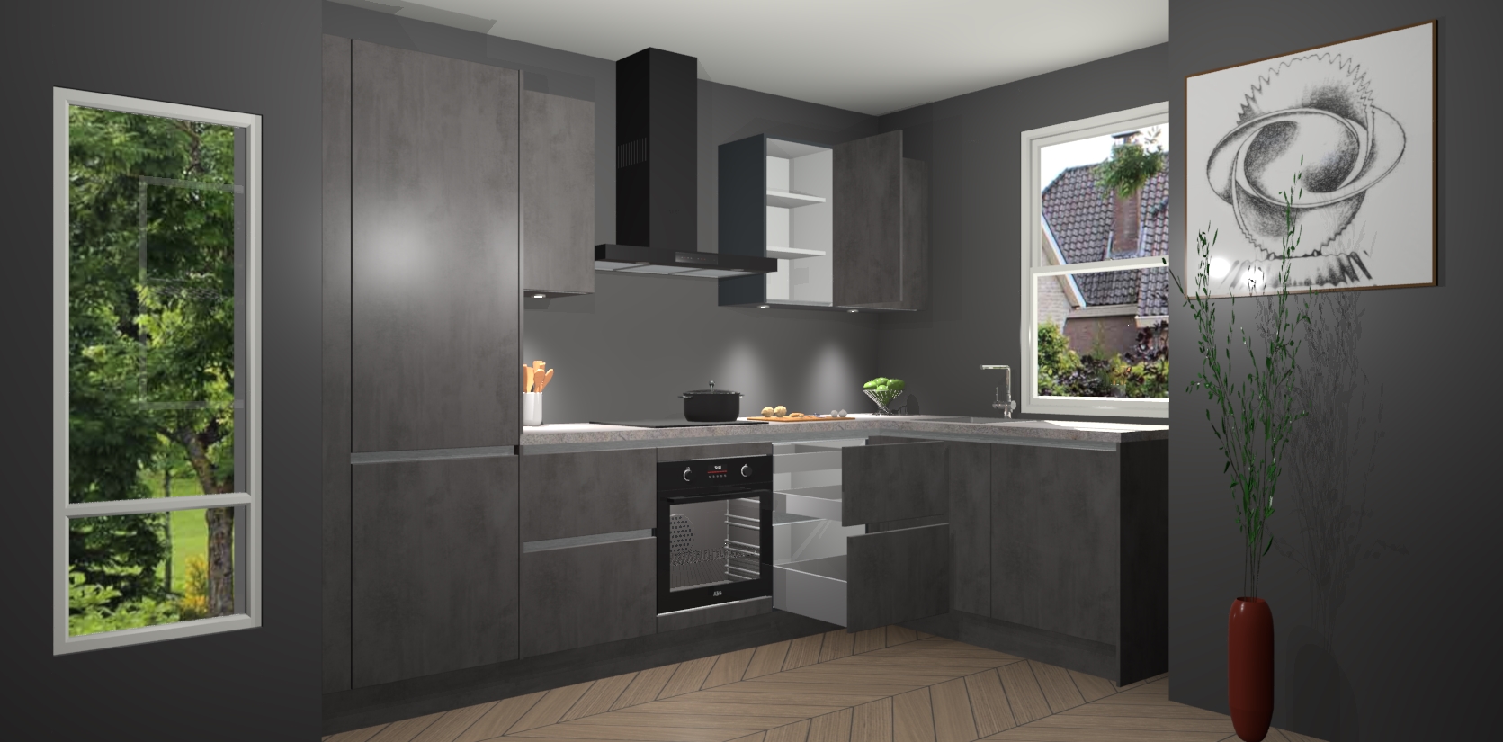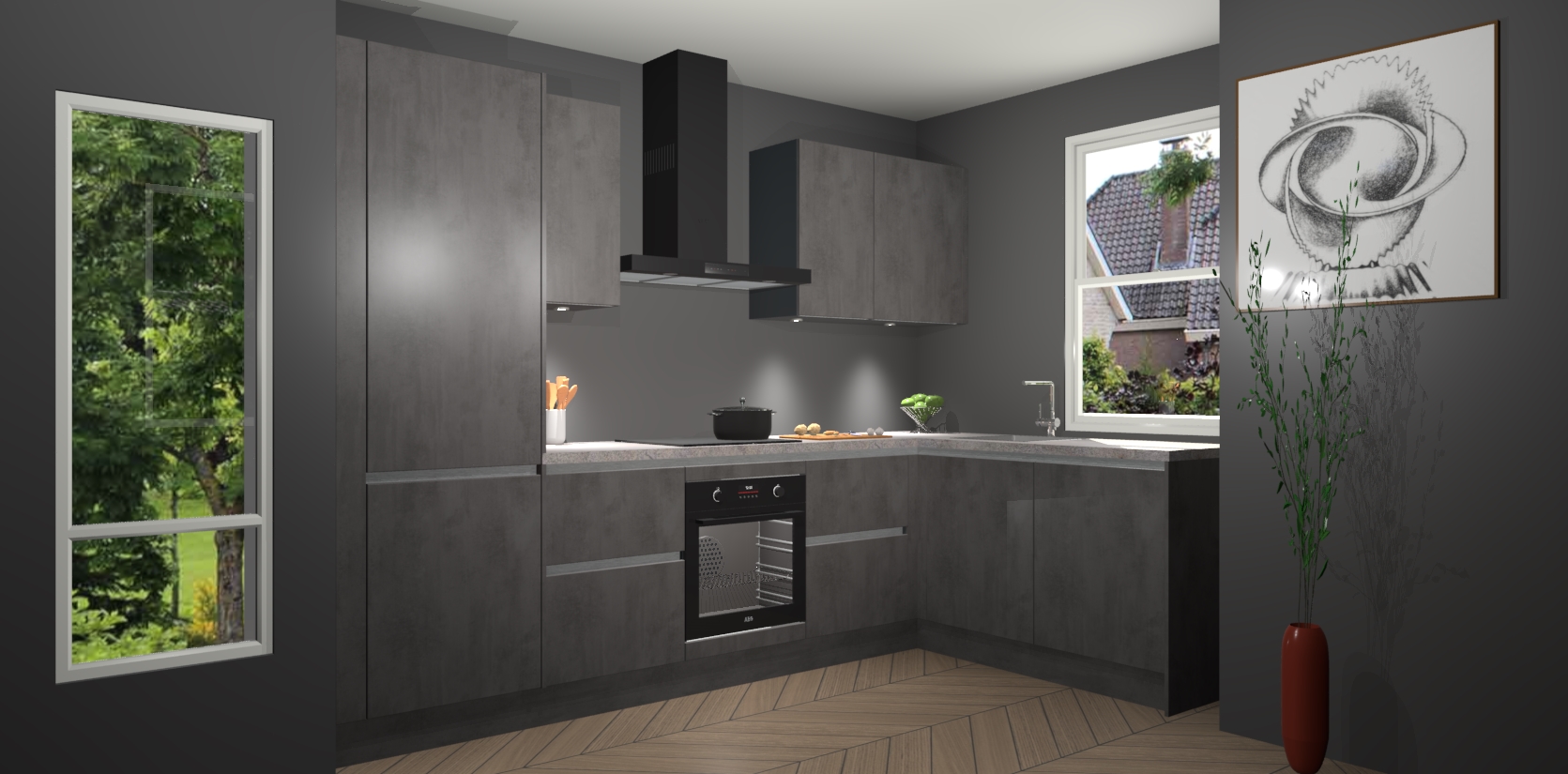 De Beton Antraciet greeploze keuken Geneve is precies wat u nodig heeft als u op zoek bent naar modern design, versmolten met tijdloze schoonheid. De strakke afwerking voegt klasse toe terwijl het toch een uitnodigende sfeer behoudt; zeker om zowel gasten als uzelf te inspireren om in stijl te gaan koken! En nog beter, het zal uw budget niet breken - dus waarom wachten? Met de Beton Antraciet greeploze keuken Geneve bent u verzekerd van kwaliteit zonder in te leveren op de prijs!