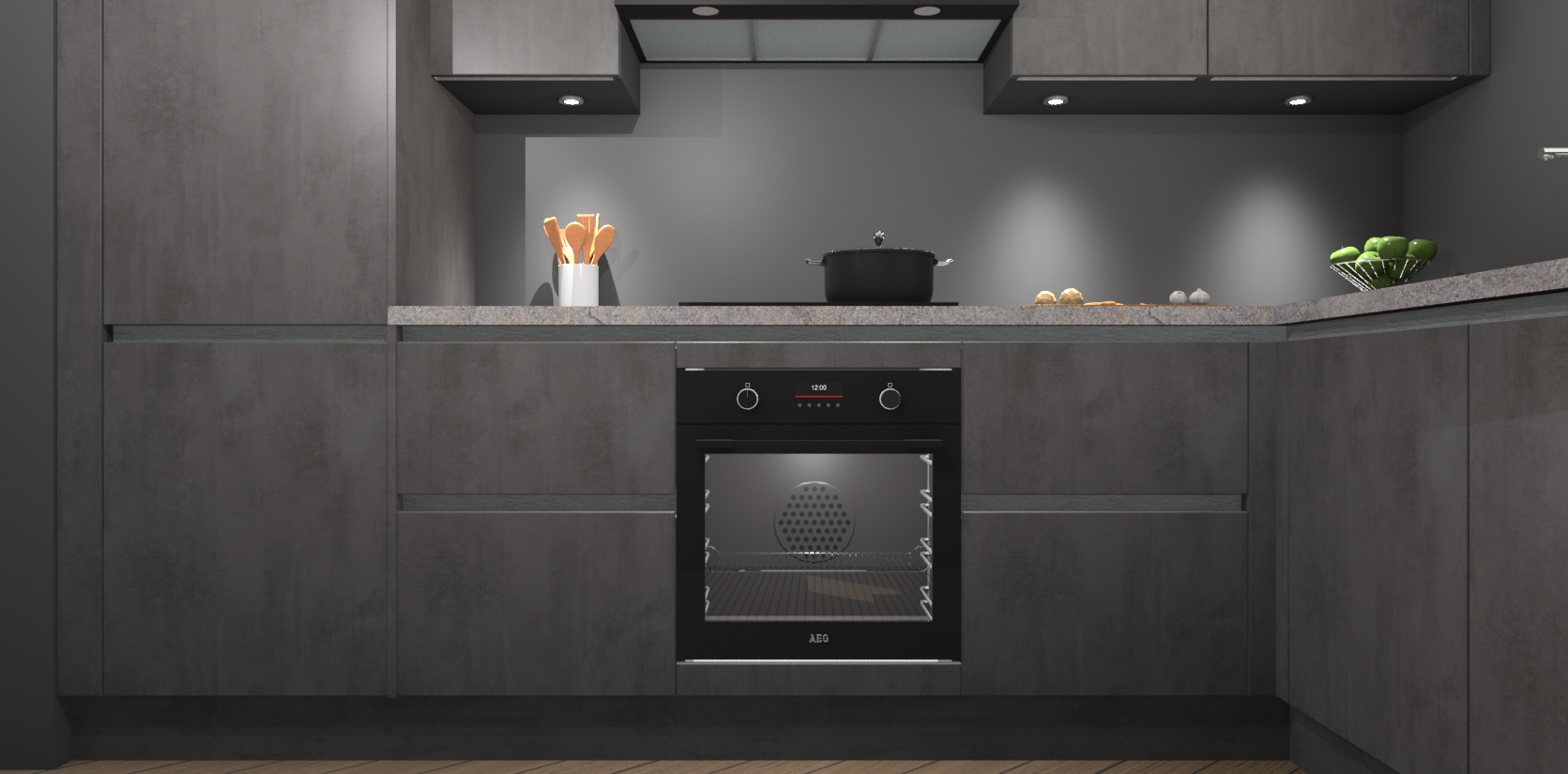 De Beton Antraciet greeploze keuken Geneve is uitgerust met 5 inbouwapparaten - een oven, inductiekookplaat, afzuigkap, vaatwasser en koelkast - voor al uw kook- en bewaarbehoeftes. U kunt deze apparaten desgewenst eenvoudig upgraden naar AEG of de oven omruilen voor een combimagnetron na het plaatsen van uw bestelling. En met de soft close deuren, voldoende opbergruimte en kasten die voorgemonteerd worden geleverd, bent u in een mum van tijd klaar om heerlijke maaltijden te bereiden!