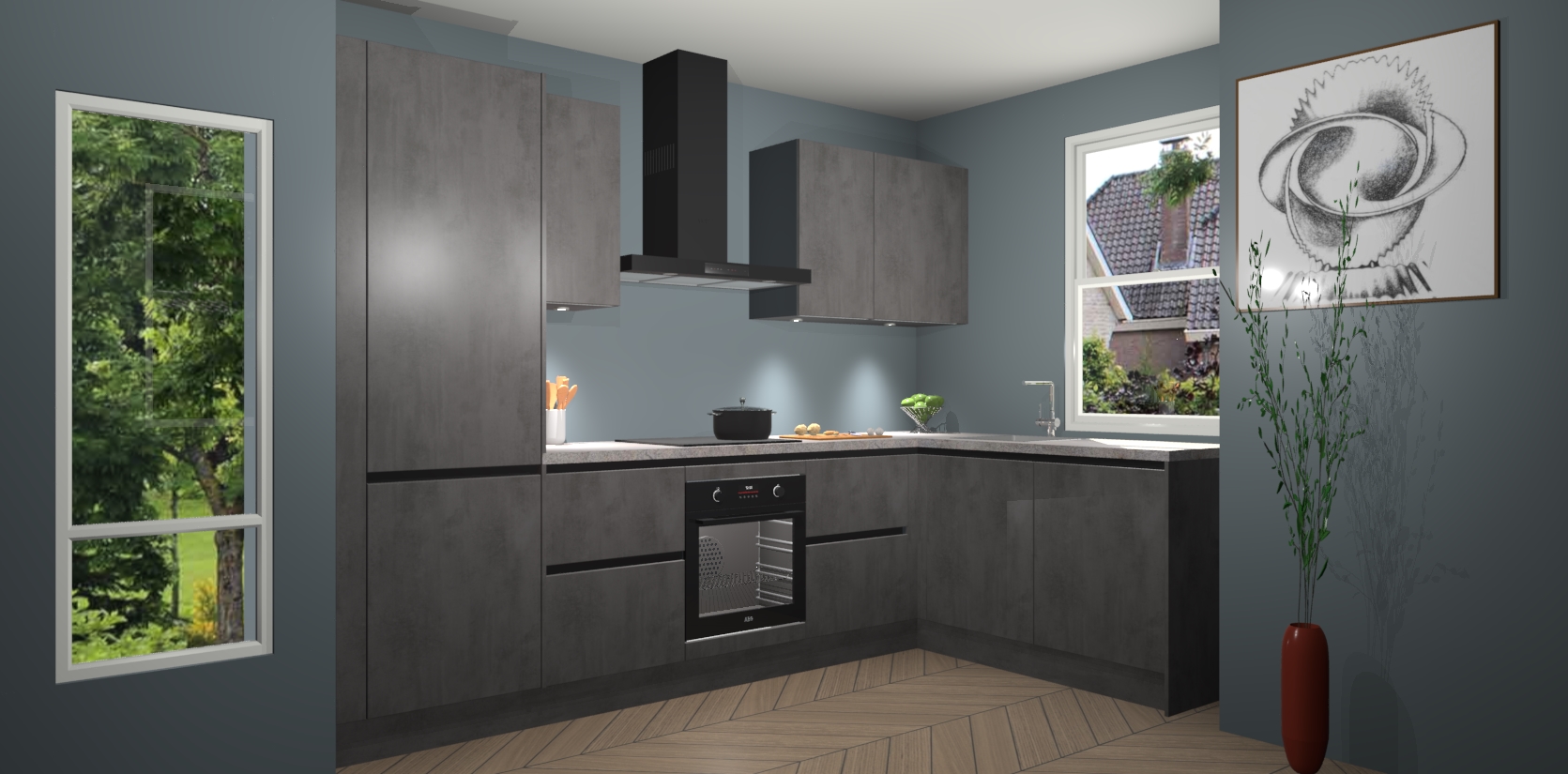 De Beton Antraciet greeploze keuken Geneve is precies wat u nodig heeft als u op zoek bent naar modern design, versmolten met tijdloze schoonheid. De strakke afwerking voegt klasse toe terwijl het toch een uitnodigende sfeer behoudt; zeker om zowel gasten als uzelf te inspireren om in stijl te gaan koken! En nog beter, het zal uw budget niet breken - dus waarom wachten? Met de Beton Antraciet greeploze keuken Geneve bent u verzekerd van kwaliteit zonder in te leveren op de prijs!