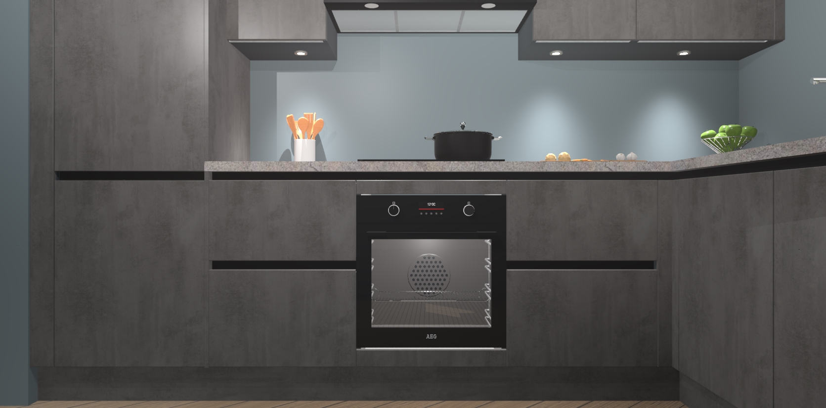 De Beton Antraciet greeploze keuken Geneve is uitgerust met 5 inbouwapparaten - een oven, inductiekookplaat, afzuigkap, vaatwasser en koelkast - voor al uw kook- en bewaarbehoeftes. U kunt deze apparaten desgewenst eenvoudig upgraden naar AEG of de oven omruilen voor een combimagnetron na het plaatsen van uw bestelling. En met de soft close deuren, voldoende opbergruimte en kasten die voorgemonteerd worden geleverd, bent u in een mum van tijd klaar om heerlijke maaltijden te bereiden!