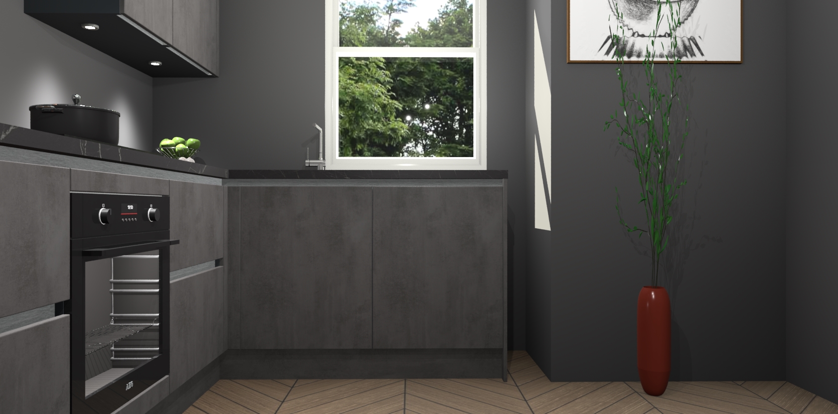 De Beton Antraciet greeploze keuken Geneve is uitgerust met 5 inbouwapparaten - een oven, inductiekookplaat, afzuigkap, vaatwasser en koelkast - voor al uw kook- en bewaarbehoeftes. U kunt deze apparaten desgewenst eenvoudig upgraden naar AEG of de oven omruilen voor een combimagnetron na het plaatsen van uw bestelling. En met de soft close deuren, voldoende opbergruimte en kasten die voorgemonteerd worden geleverd, bent u in een mum van tijd klaar om heerlijke maaltijden te bereiden!
