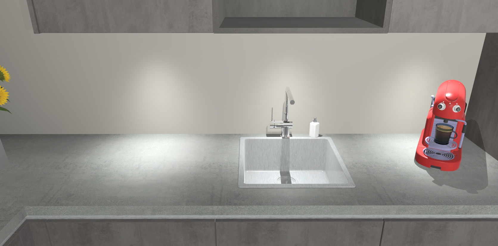 • De spoelbak is nog niet in gevreesd. Dit dient tijdens het werk gedaan te worden