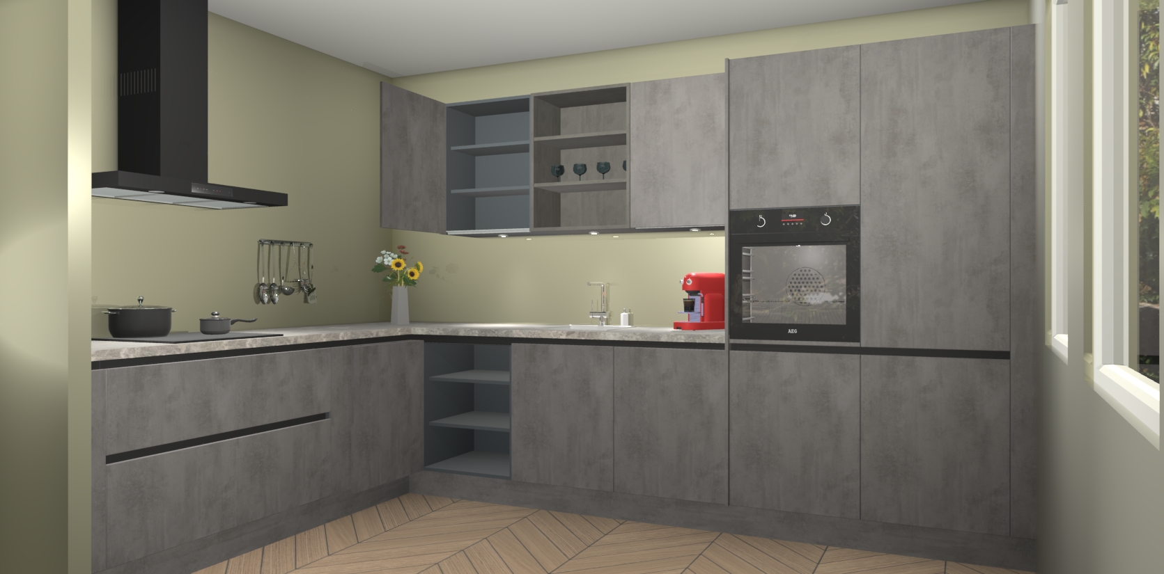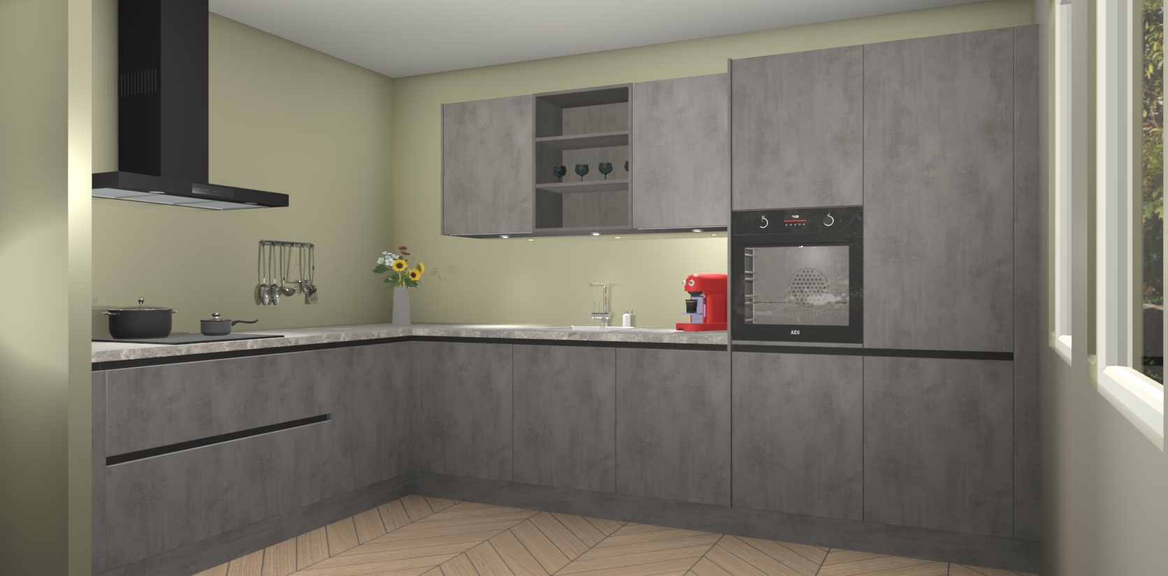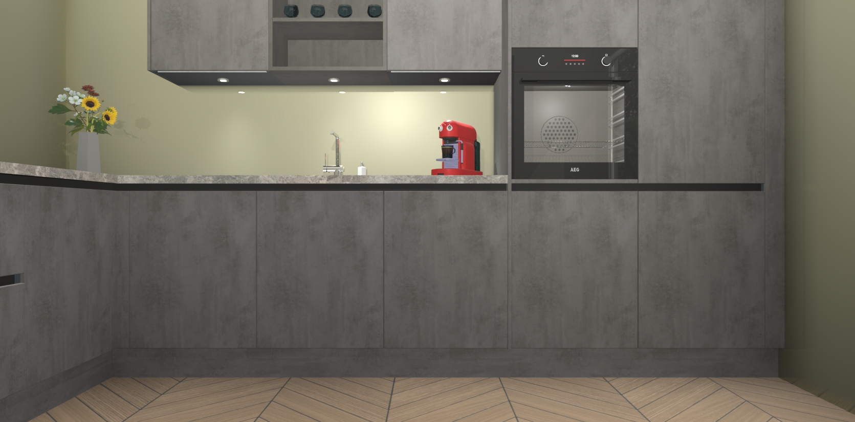 Dus waarom zou u wachten? Maak u klaar om bijeenkomsten voor familie en vrienden te organiseren en verblind ze met de stijlvol luxueuze Beton Antraciet greeploze keuken Gotenburg! Met veel opbergruimte in een fractie van de tijd en een prijs die geen compromis in kwaliteit vereist - dit is misschien wel het meest decadente keukenkoopje dat er is!