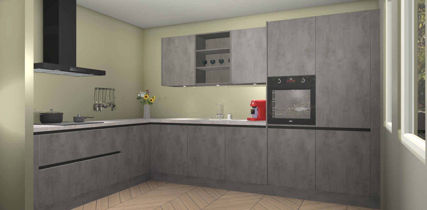 Dus waarom zou u wachten? Maak u klaar om bijeenkomsten voor familie en vrienden te organiseren en verblind ze met de stijlvol luxueuze Beton Antraciet greeploze keuken Gotenburg! Met veel opbergruimte in een fractie van de tijd en een prijs die geen compromis in kwaliteit vereist - dit is misschien wel het meest decadente keukenkoopje dat er is!