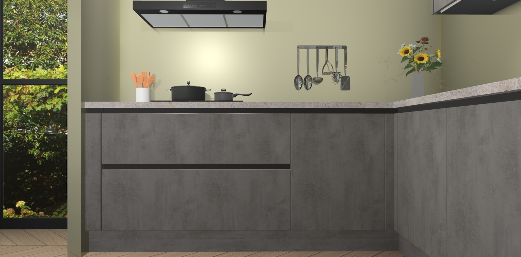 Dit is de perfecte keuken voor wie op zoek is naar een luxueuze stijl zonder zijn portemonnee te legen! Het chique ontwerp van Beton Antraciet greeploze keuken Gotenburg voegt dat vleugje verfijning toe aan elk huis.