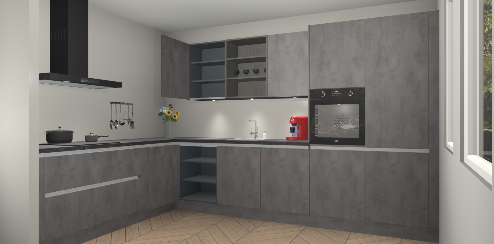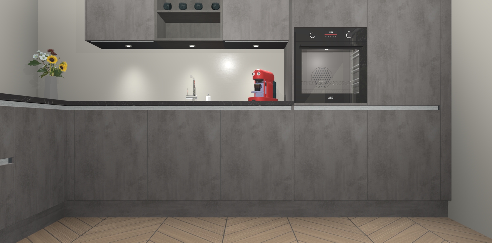 Dus waarom zou u wachten? Maak u klaar om bijeenkomsten voor familie en vrienden te organiseren en verblind ze met de stijlvol luxueuze Beton Antraciet greeploze keuken Gotenburg! Met veel opbergruimte in een fractie van de tijd en een prijs die geen compromis in kwaliteit vereist - dit is misschien wel het meest decadente keukenkoopje dat er is!