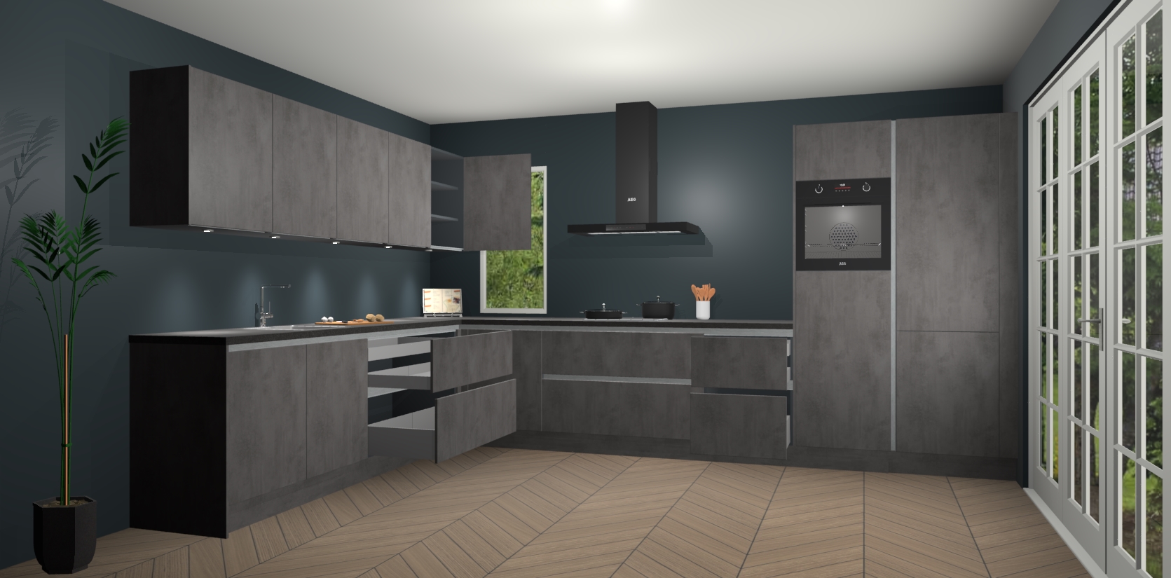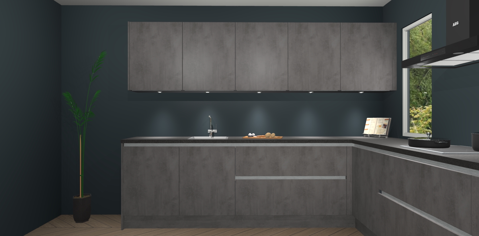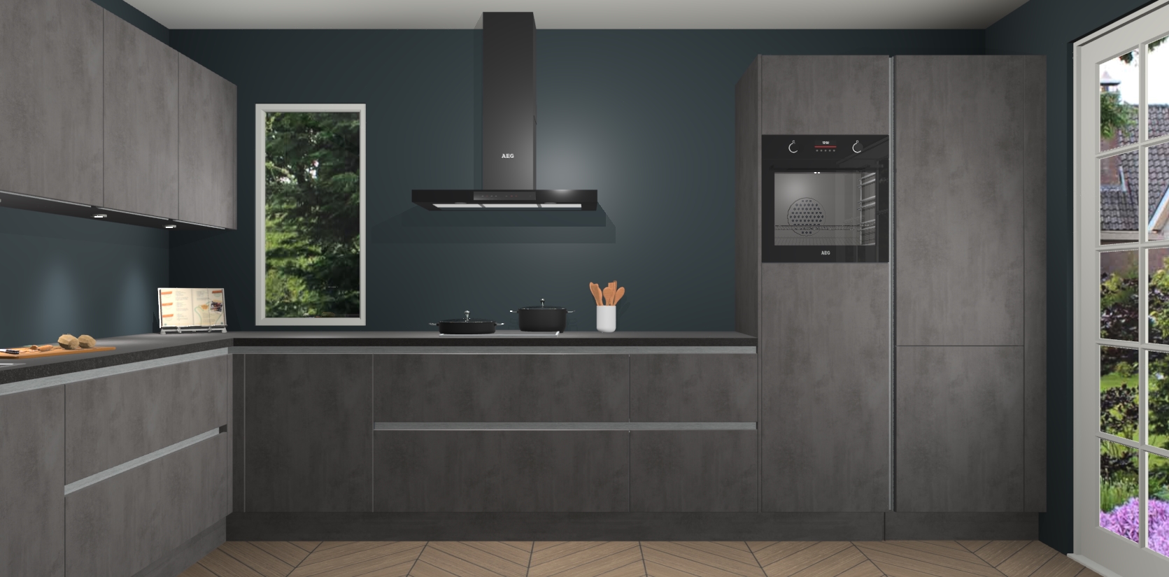 Heeft u nog apparatuur nodig? Geen probleem: de beton antraciet greeploze keuken Harare bevat vijf ingebouwde apparaten - een oven, inductiekookplaat, afzuigkap, vaatwasser en koelkast - die gemakkelijk kunnen worden bijgewerkt naar AEG na bestelling. En als dat nog niet genoeg is; onze kasten worden pre-geassembleerd geleverd en zijn verkrijgbaar tegen een vastgeroeste lage prijs! U hoeft nooit meer te zoeken naar goede kwaliteit en service want onze producten hebben echt Duitse kwaliteit.
