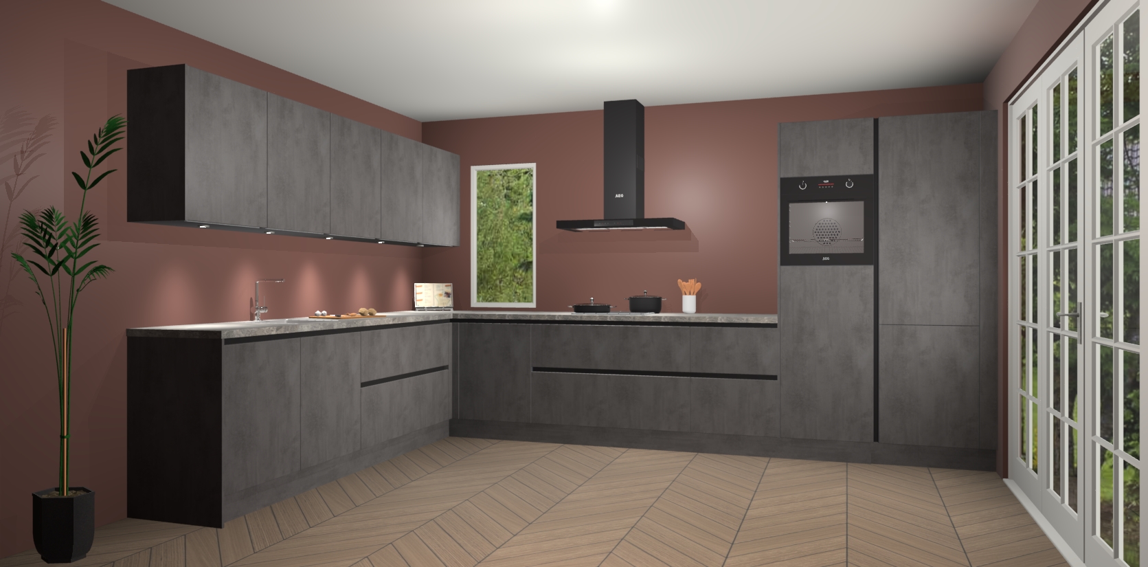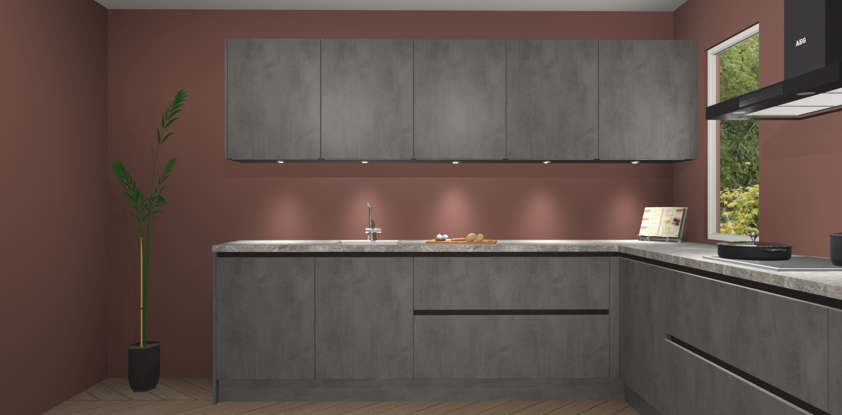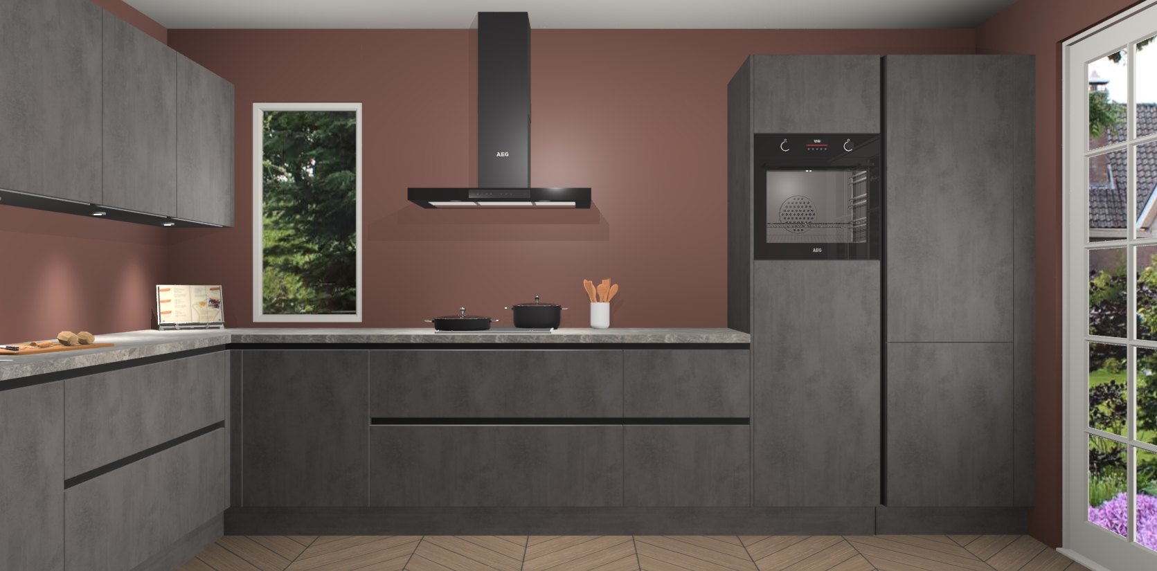 Heeft u nog apparatuur nodig? Geen probleem: de beton antraciet greeploze keuken Harare bevat vijf ingebouwde apparaten - een oven, inductiekookplaat, afzuigkap, vaatwasser en koelkast - die gemakkelijk kunnen worden bijgewerkt naar AEG na bestelling. En als dat nog niet genoeg is; onze kasten worden pre-geassembleerd geleverd en zijn verkrijgbaar tegen een vastgeroeste lage prijs! U hoeft nooit meer te zoeken naar goede kwaliteit en service want onze producten hebben echt Duitse kwaliteit.