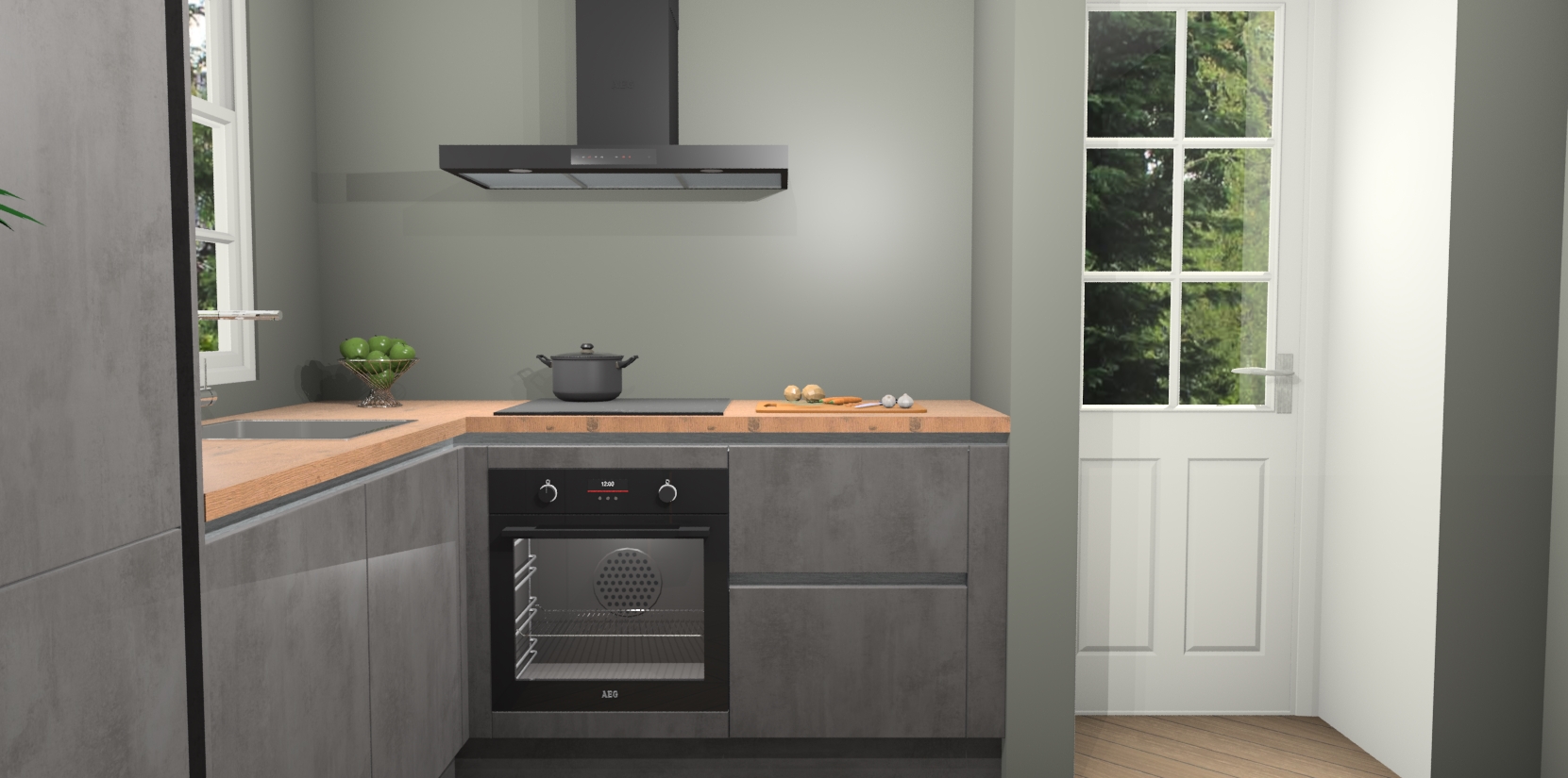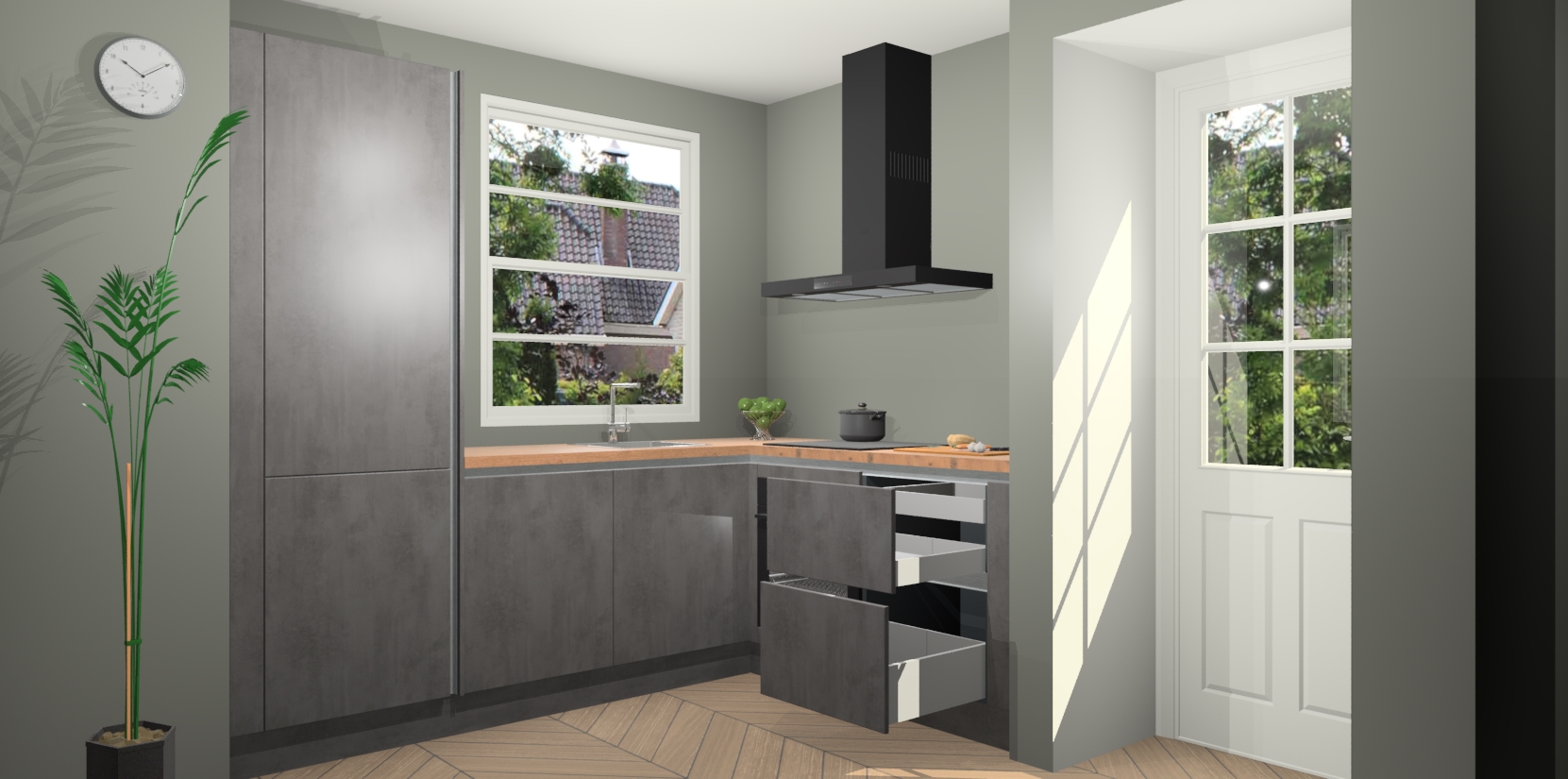 Wilt u een echte aanwinst voor uw keuken, maar bent u op zoek naar iets specialers dan de standaardkeukens? Kies dan voor de Beton Antraciet greeploze keuken Harbin! Dit prachtige hoekkeukenontwerp geeft u alle ruimte om optimaal te genieten van heerlijk koken. Het uitmuntende afwerkingsniveau, de fraaie houtstructuur en de sfeervolle zwarte grepen maken van de Beton Antraciet greeploze keuken Harbin de perfecte keuze voor zowel enthousiaste thuiskoks als design-minded interieurliefhebbers.