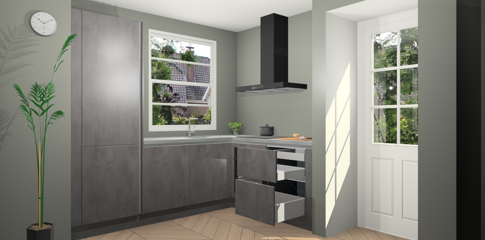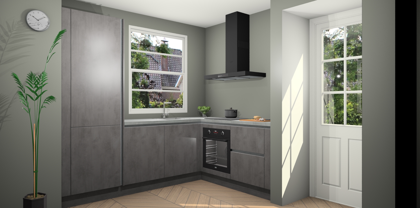 Wilt u een echte aanwinst voor uw keuken, maar bent u op zoek naar iets specialers dan de standaardkeukens? Kies dan voor de Beton Antraciet greeploze keuken Harbin! Dit prachtige hoekkeukenontwerp geeft u alle ruimte om optimaal te genieten van heerlijk koken. Het uitmuntende afwerkingsniveau, de fraaie houtstructuur en de sfeervolle zwarte grepen maken van de Beton Antraciet greeploze keuken Harbin de perfecte keuze voor zowel enthousiaste thuiskoks als design-minded interieurliefhebbers.