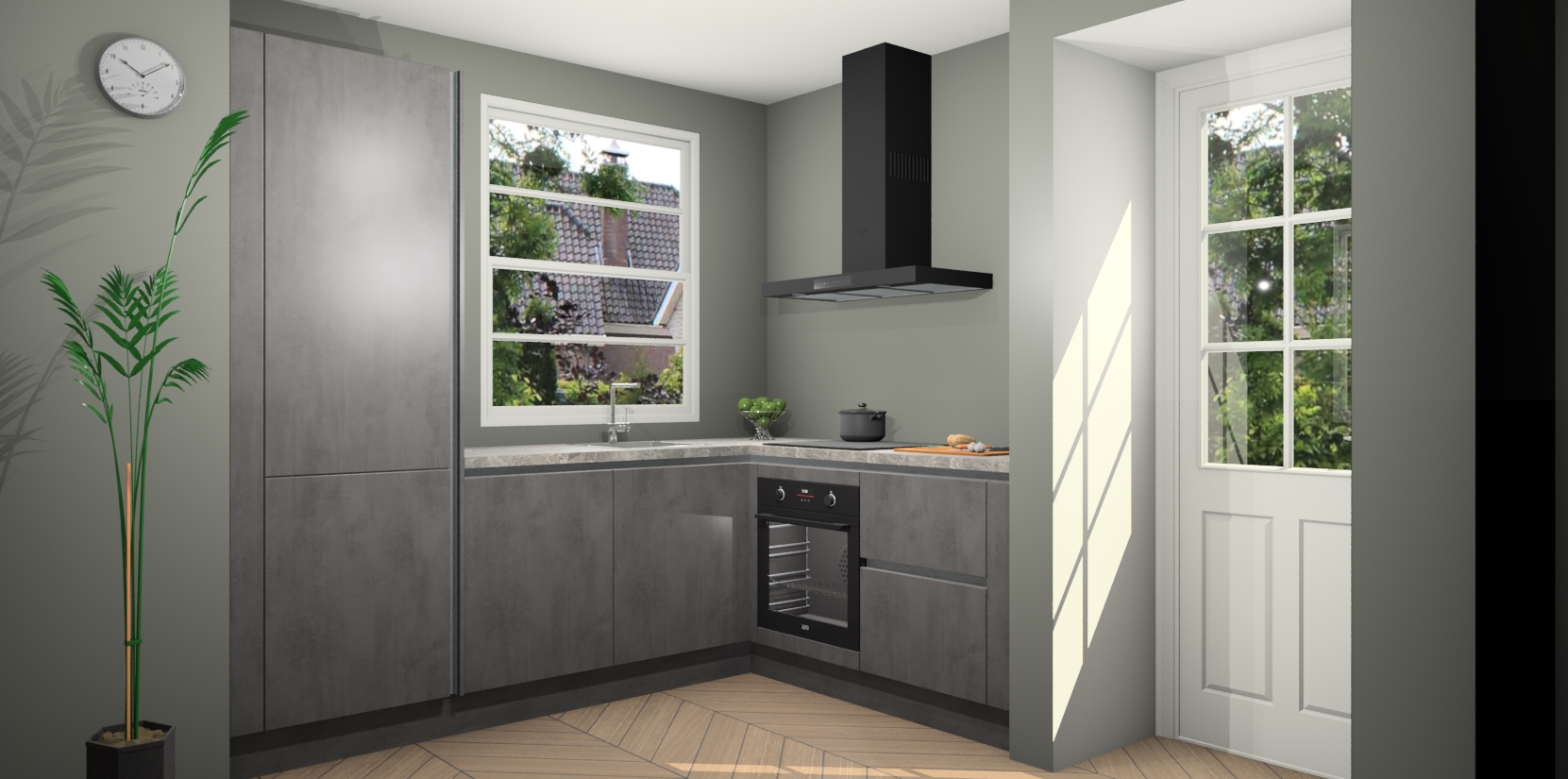 Wilt u een echte aanwinst voor uw keuken, maar bent u op zoek naar iets specialers dan de standaardkeukens? Kies dan voor de Beton Antraciet greeploze keuken Harbin! Dit prachtige hoekkeukenontwerp geeft u alle ruimte om optimaal te genieten van heerlijk koken. Het uitmuntende afwerkingsniveau, de fraaie houtstructuur en de sfeervolle zwarte grepen maken van de Beton Antraciet greeploze keuken Harbin de perfecte keuze voor zowel enthousiaste thuiskoks als design-minded interieurliefhebbers.