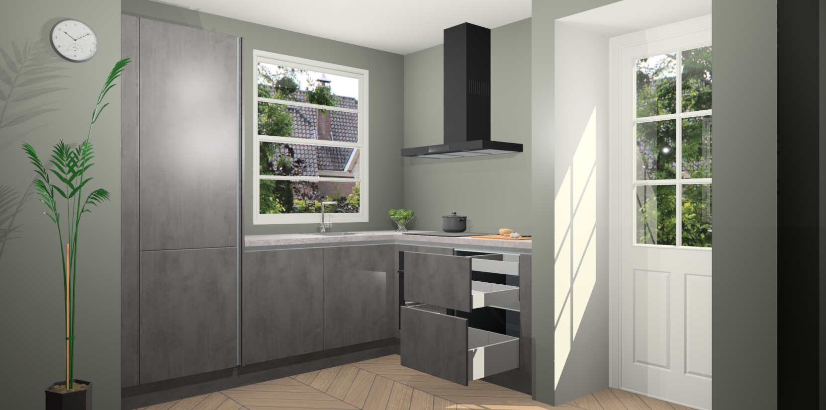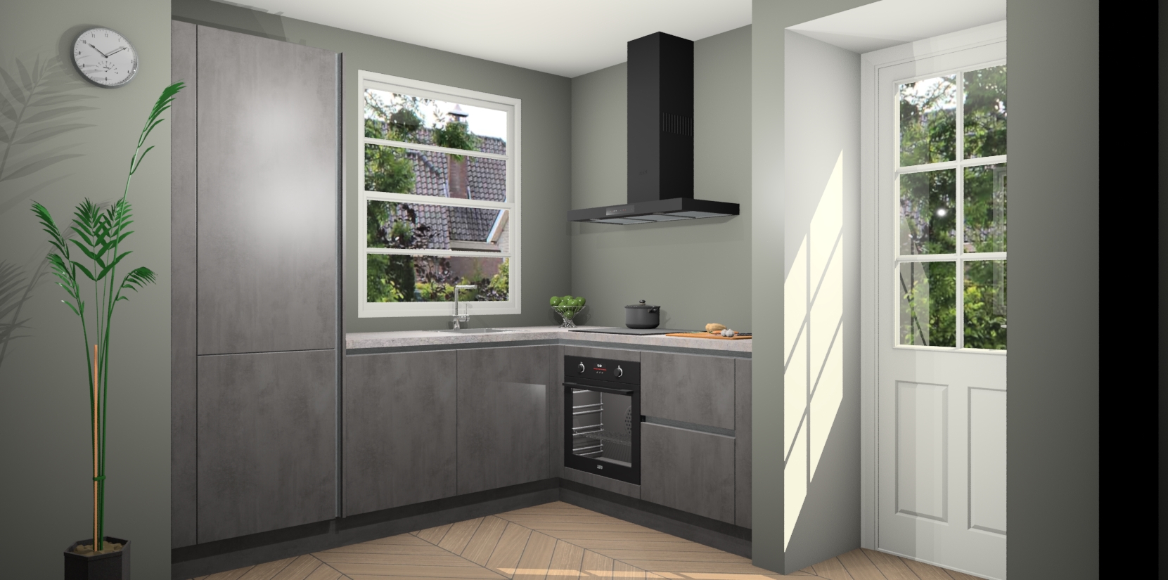 Plus: de Beton Antraciet greeploze keuken Harbin is kant en klaar voorzien van 5 inbouwapparaten. U krijgt er direct bij: een oven, inductiekookplaat, afzuigkap, vaatwasser én koelkast. En als dat nog niet luxueus genoeg is, heeft u nog de mogelijkheid om de apparaten te upgraden naar AEG of om uw oven te vervangen door een combimagnetron. Ook fijn van voordeel zijn de softclosing-deuren die ervoor zorgen dat u geen geluid hoeft te maken wanneer u weer uw koelkastdeurtjes dichtdoet!
