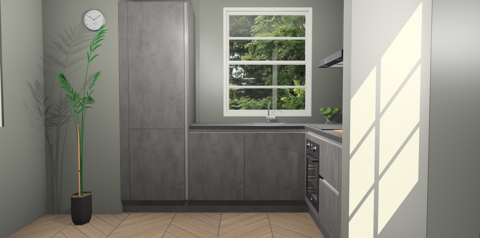 Wilt u een echte aanwinst voor uw keuken, maar bent u op zoek naar iets specialers dan de standaardkeukens? Kies dan voor de Beton Antraciet greeploze keuken Harbin! Dit prachtige hoekkeukenontwerp geeft u alle ruimte om optimaal te genieten van heerlijk koken. Het uitmuntende afwerkingsniveau, de fraaie houtstructuur en de sfeervolle zwarte grepen maken van de Beton Antraciet greeploze keuken Harbin de perfecte keuze voor zowel enthousiaste thuiskoks als design-minded interieurliefhebbers.