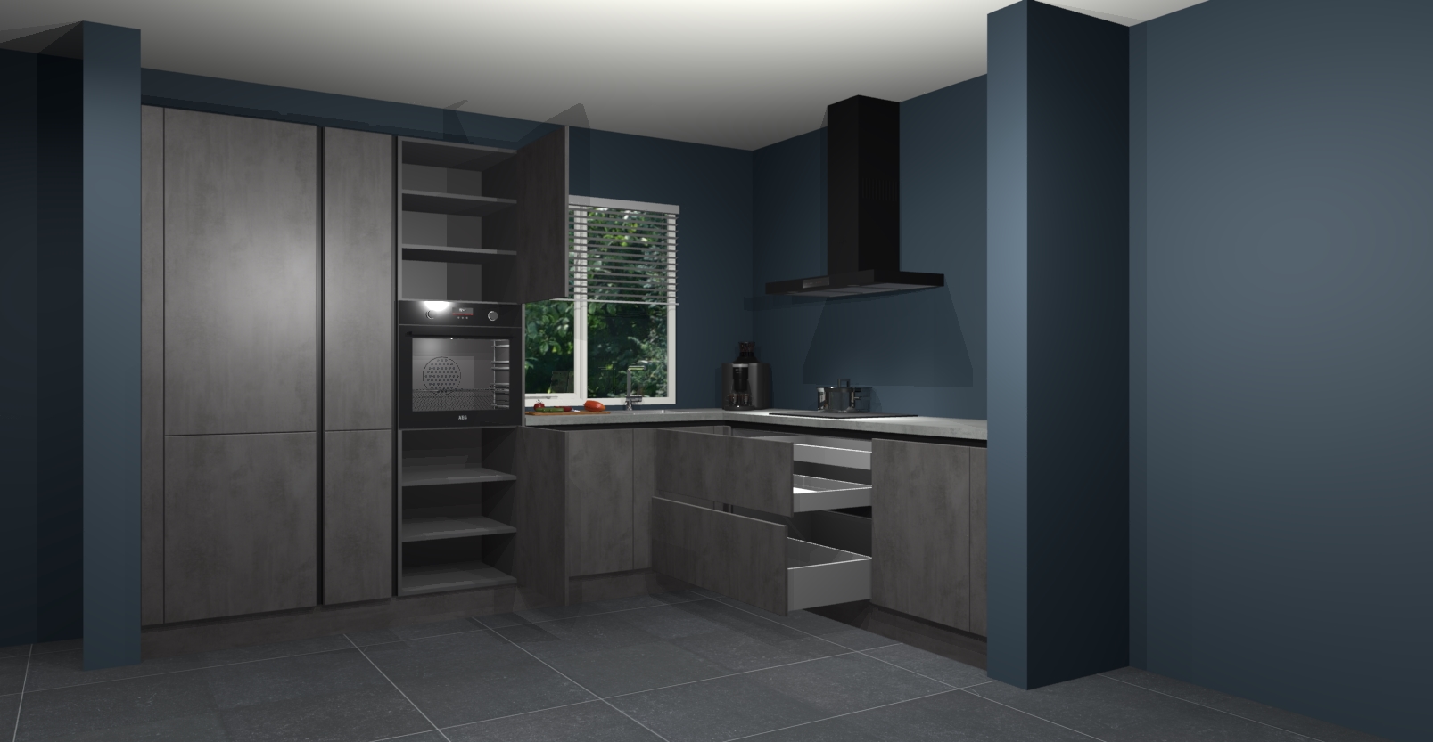 Wij presenteren de revolutie in keukens: de Beton Antraciet keuken India. Met modern design, een tijdloos uiterlijk en kasten die al voor gemonteerd worden geleverd, laat deze stijlvolle keuken uw kookervaring op een hele nieuwe manier transformeren.