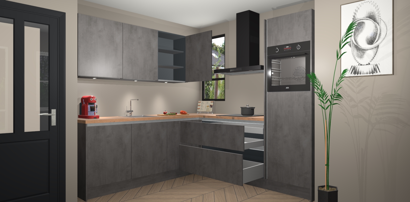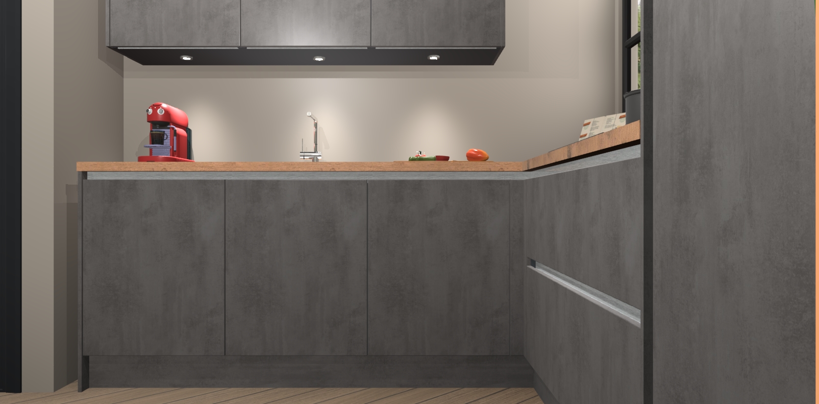 Inclusief plinten, stelpoten en werkblad