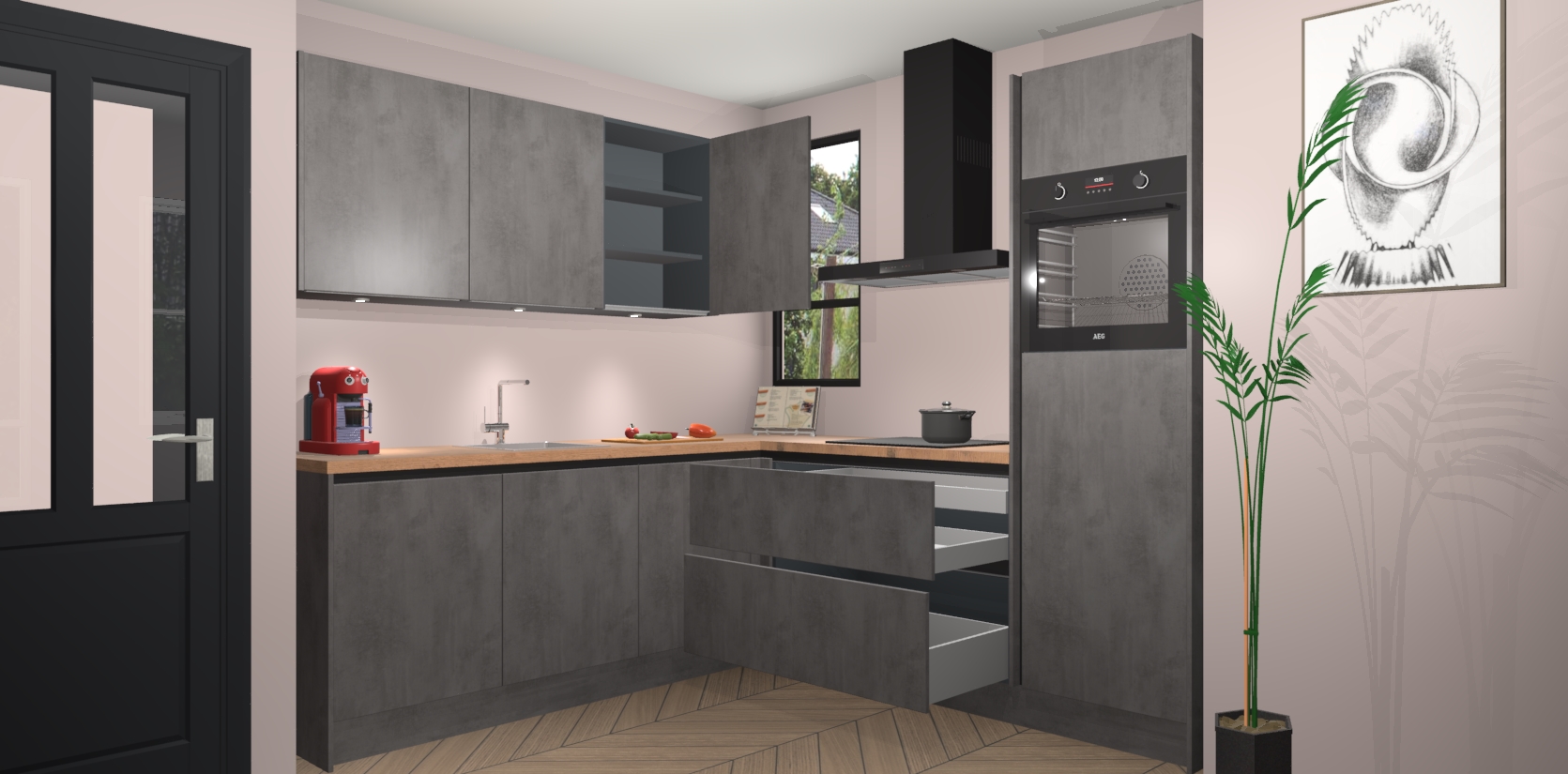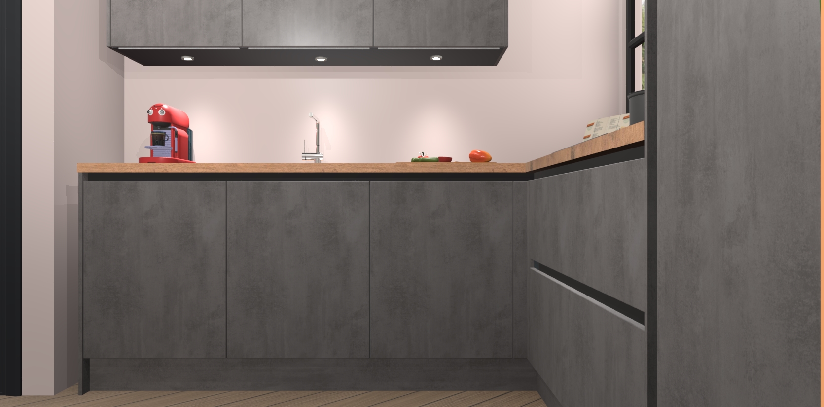 Inclusief plinten, stelpoten en werkblad