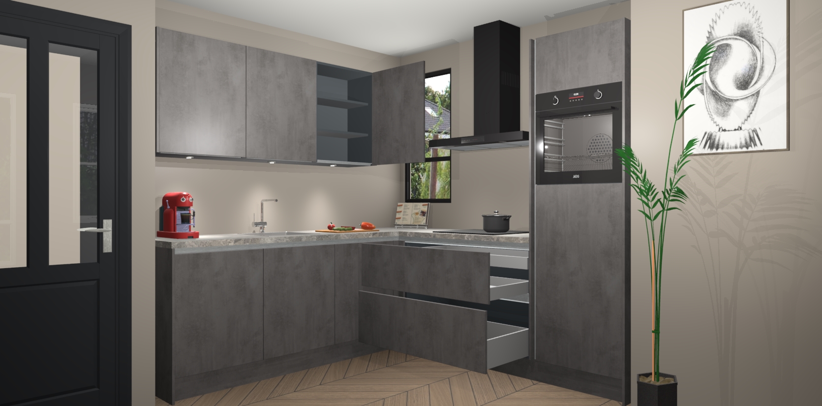 Koken wordt nooit meer hetzelfde met de aanwinst van de Beton Antraciet greeploze keuken Johannesburg! In deze moderne keuken ervaring zal u genieten van alle elementen die nieuwe kansen bieden om op een andere manier te koken. Met eeuwigdurende stijl en generieke opslagruimte zal u geen moment vervelendekomen als u in uw keuken bent. De deuren bevatten een comfortabele soft-close functie, waardoor er minder gehannes is bij elk gebruik.