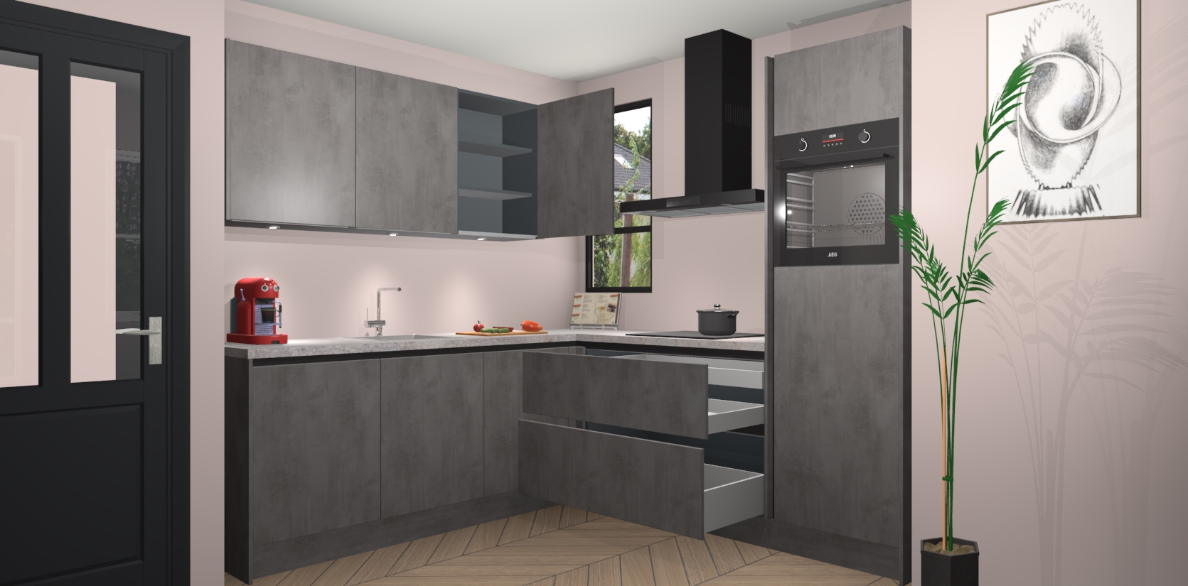 Koken wordt nooit meer hetzelfde met de aanwinst van de Beton Antraciet greeploze keuken Johannesburg! In deze moderne keuken ervaring zal u genieten van alle elementen die nieuwe kansen bieden om op een andere manier te koken. Met eeuwigdurende stijl en generieke opslagruimte zal u geen moment vervelendekomen als u in uw keuken bent. De deuren bevatten een comfortabele soft-close functie, waardoor er minder gehannes is bij elk gebruik.