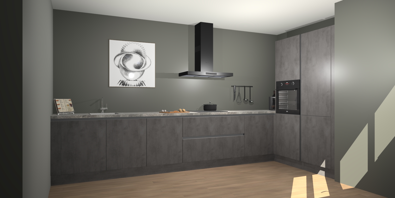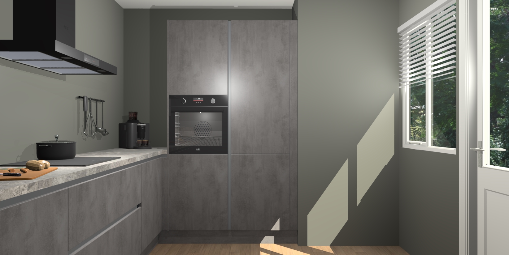 Welkom bij de Beton Antraciet greeploze keuken Khao Lak. Deze prachtige keuken zal de komende jaren het middelpunt van de belangstelling in uw huis zijn. Uitgerust met vijf inbouwapparaten komt u nooit kookgereedschap tekort. Bovendien geeft de warme houtlook elke ruimte een uitnodigende en tijdloze uitstraling.