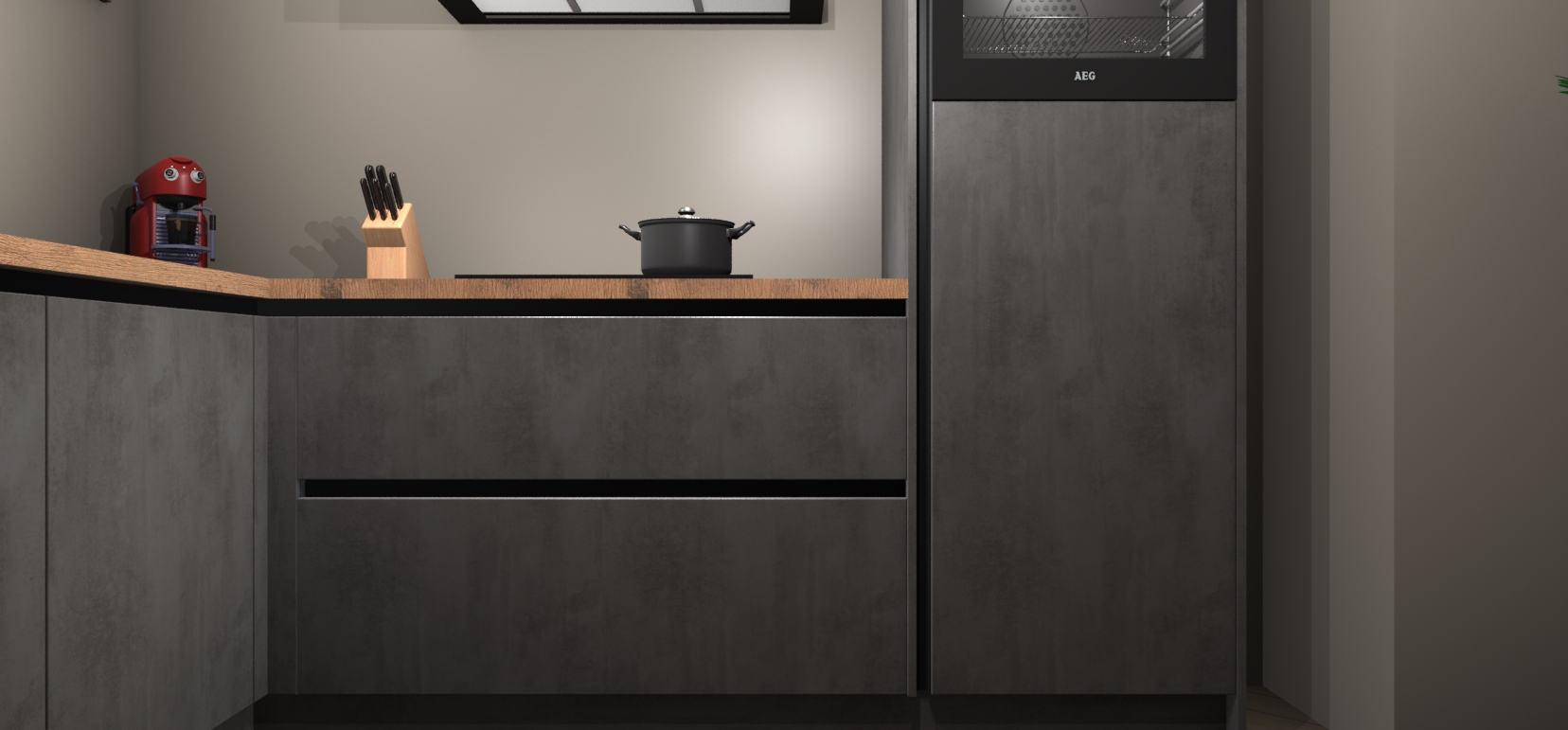 Inclusief plinten, stelpoten en werkblad