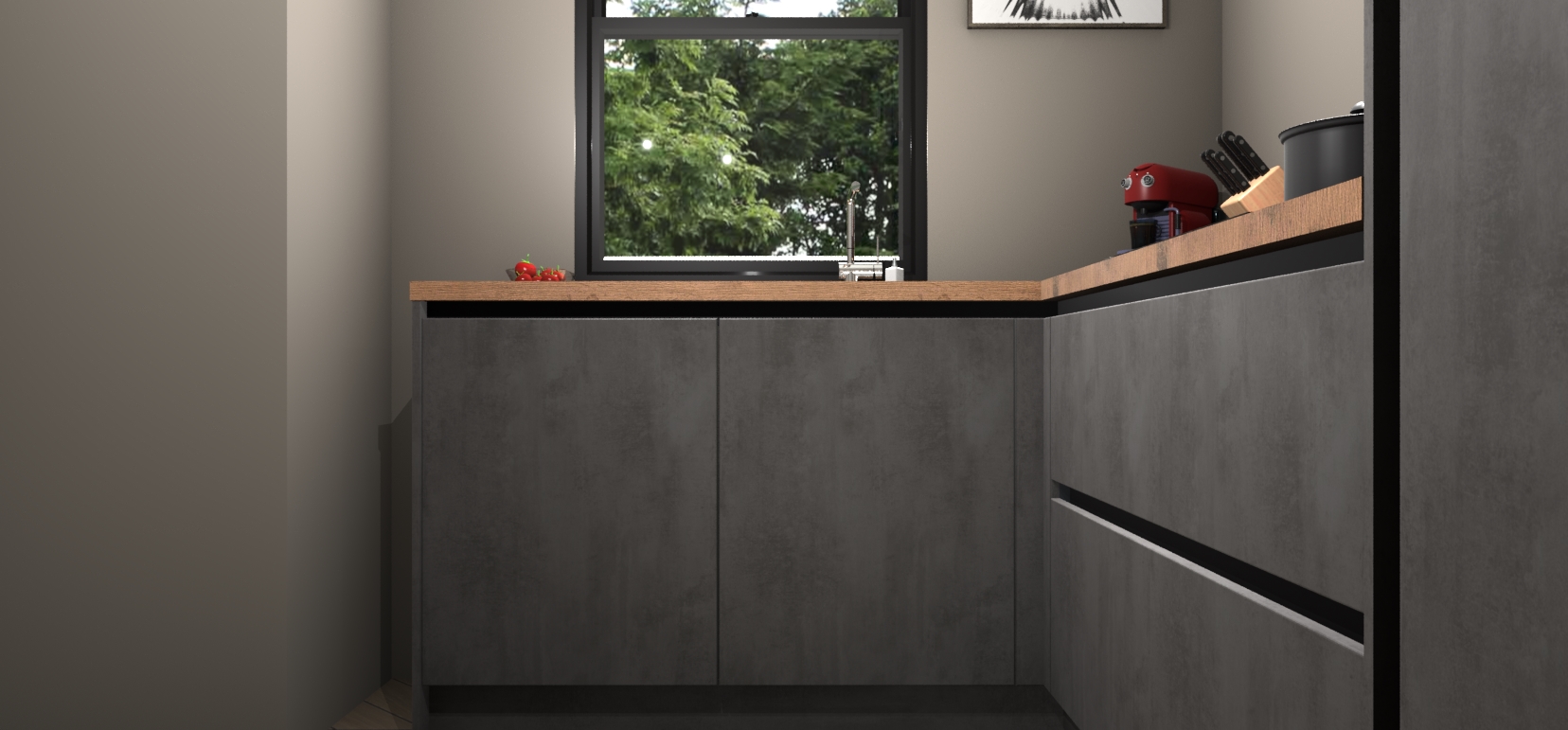 Als u op zoek bent naar de perfecte keuken om uw huis die luxe, moderne uitstraling te geven met een warme en gezellige touch, dan is uw zoektocht voorbij! Maak kennis met de Beton Antraciet greeploze keuken Kinshasa.