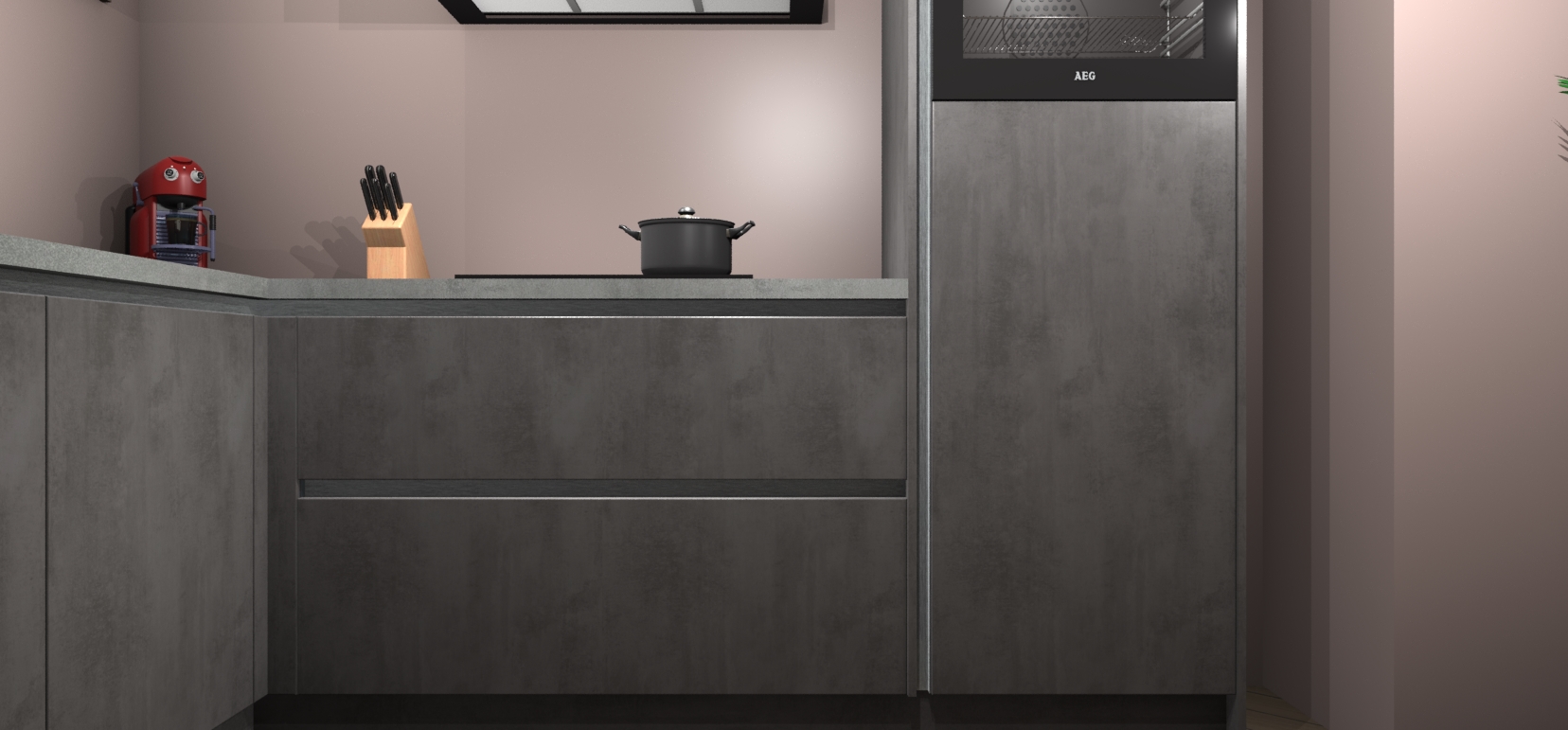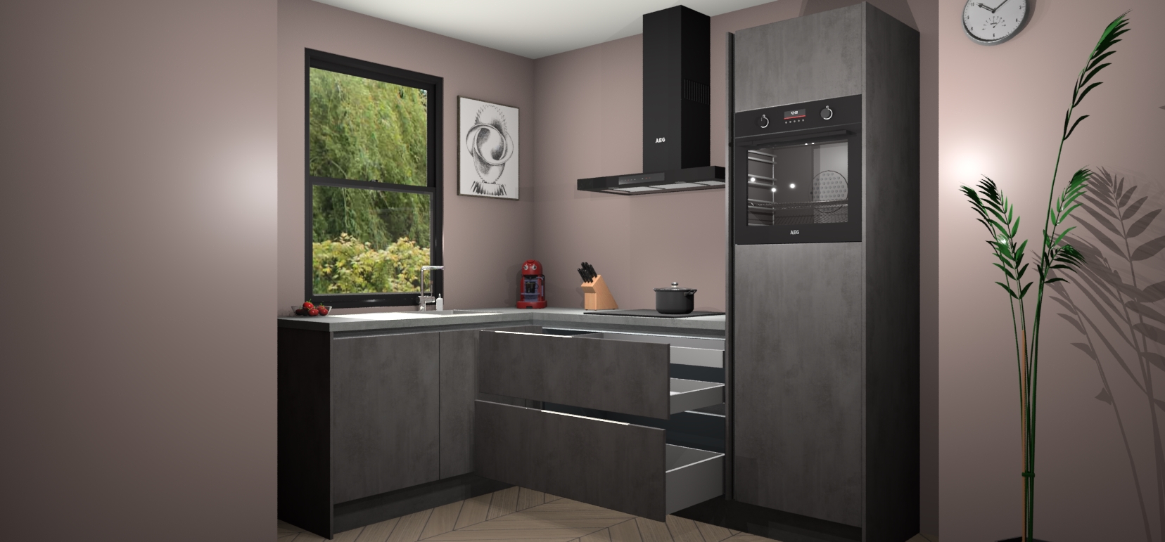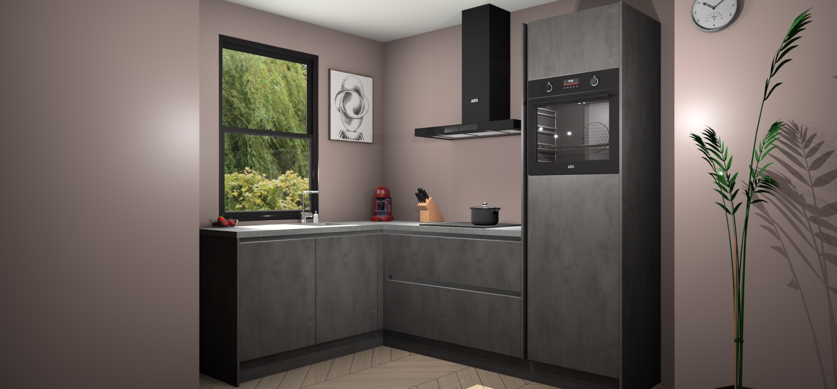Deze prachtige hoekkeuken heeft alle benodigdheden om uw droomkook- en eetruimte compleet te maken. De Beton Antraciet kasten bieden een echo van raffinement, terwijl de 5 inbouwapparaten genoeg opties bieden voor het bereiden van heerlijke maaltijden. De oven, inductiekookplaat, afzuigkap, vaatwasser en koelkast zorgen ervoor dat u tijd in de keuken zo efficiënt mogelijk verloopt, terwijl ze ook dat extra vleugje luxe bieden.