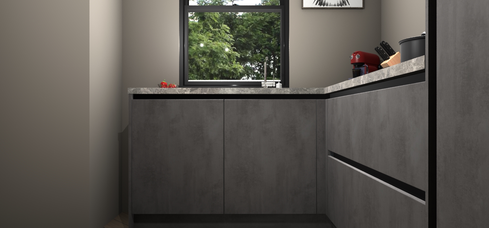 Als u op zoek bent naar de perfecte keuken om uw huis die luxe, moderne uitstraling te geven met een warme en gezellige touch, dan is uw zoektocht voorbij! Maak kennis met de Beton Antraciet greeploze keuken Kinshasa.