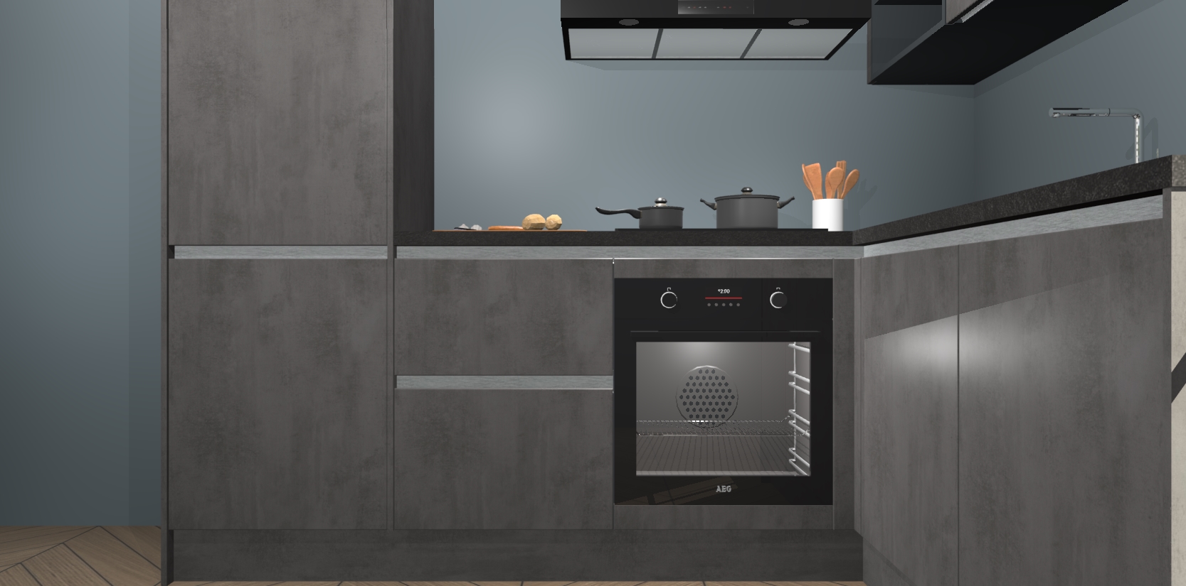 Dit model biedt u voldoende opbergruimte en vijf ingebouwde apparaten: een oven, inductiekookplaat, afzuigkap, vaatwasser en koelkast. Deze apparaten kunnen gemakkelijk worden geüpgrade naar AEG nadat u besteld heeft. De verschillende laden en kastjes bevatten softclose-deuren waardoor ze gezellig dichtvallen met een geruststellend helemaal geruisloos geluid. En dat is nog niet alles! We garanderen ook dat de prijs altijd laag blijft - dus haal nu uw Beton Antraciet greeploze keuken Krakau terwijl het kan.