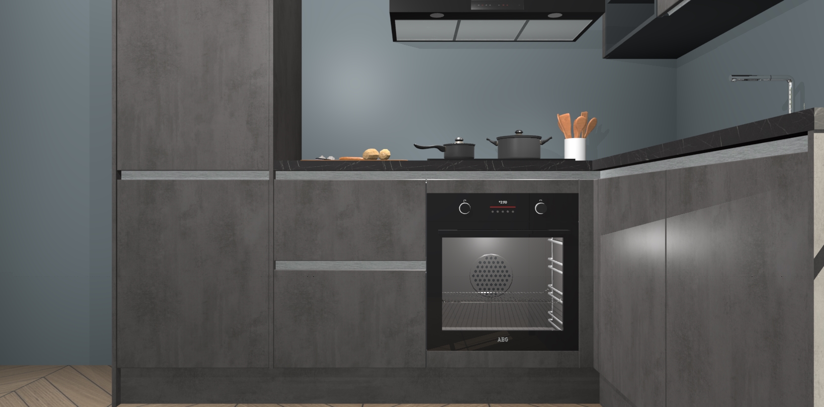 Dit model biedt u voldoende opbergruimte en vijf ingebouwde apparaten: een oven, inductiekookplaat, afzuigkap, vaatwasser en koelkast. Deze apparaten kunnen gemakkelijk worden geüpgrade naar AEG nadat u besteld heeft. De verschillende laden en kastjes bevatten softclose-deuren waardoor ze gezellig dichtvallen met een geruststellend helemaal geruisloos geluid. En dat is nog niet alles! We garanderen ook dat de prijs altijd laag blijft - dus haal nu uw Beton Antraciet greeploze keuken Krakau terwijl het kan.