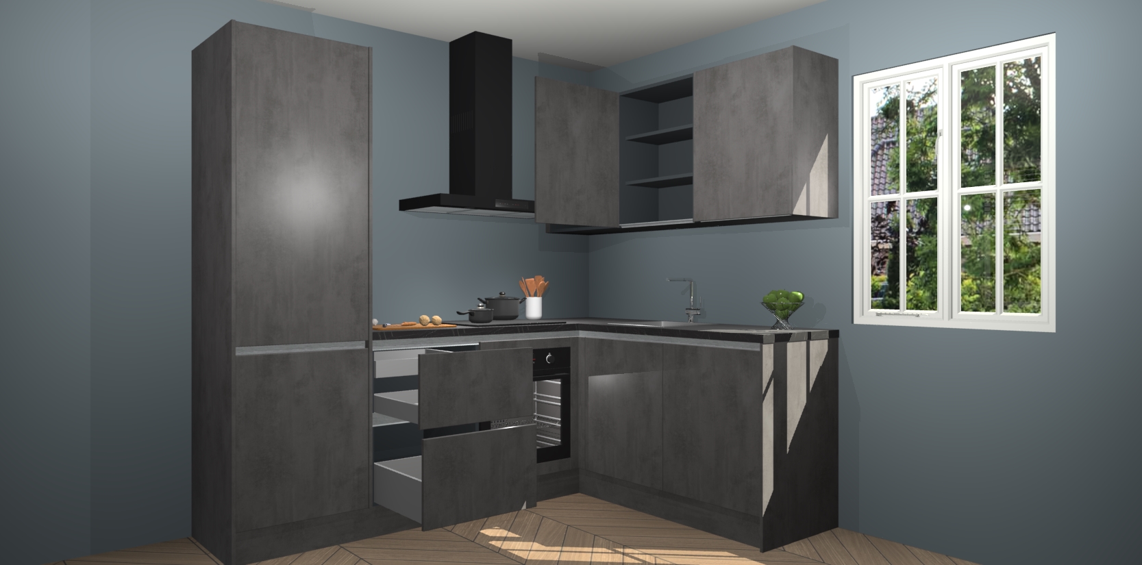 Bestellen was nog nooit zo makkelijk en we leveren met slechts 7 weken; zodra de keuken arriveert staan de kasten voor gemonteerd klaar om er alles aan te doen dat u hem gemakkelijk zelf kunt installeren! Eén ding is zeker: met de Beton Antraciet greeploze keuken Krakau slaagt u erin modischer, modernere keukens uit te rusten die tientallen jaren meegaan! Haal snel uw Beton Antraciet greeploze keuken Krakau - of u nu net begint of al 'levenservaring' hebt in de keukendroomloopbaan - want dit topmodel van onze collectie wilt u absoluut niet missen.