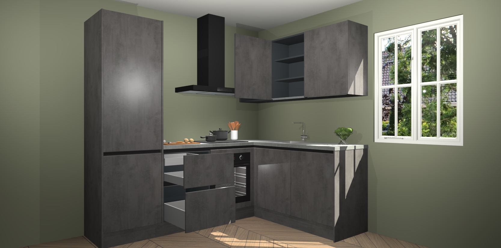 Bestellen was nog nooit zo makkelijk en we leveren met slechts 7 weken; zodra de keuken arriveert staan de kasten voor gemonteerd klaar om er alles aan te doen dat u hem gemakkelijk zelf kunt installeren! Eén ding is zeker: met de Beton Antraciet greeploze keuken Krakau slaagt u erin modischer, modernere keukens uit te rusten die tientallen jaren meegaan! Haal snel uw Beton Antraciet greeploze keuken Krakau - of u nu net begint of al 'levenservaring' hebt in de keukendroomloopbaan - want dit topmodel van onze collectie wilt u absoluut niet missen.