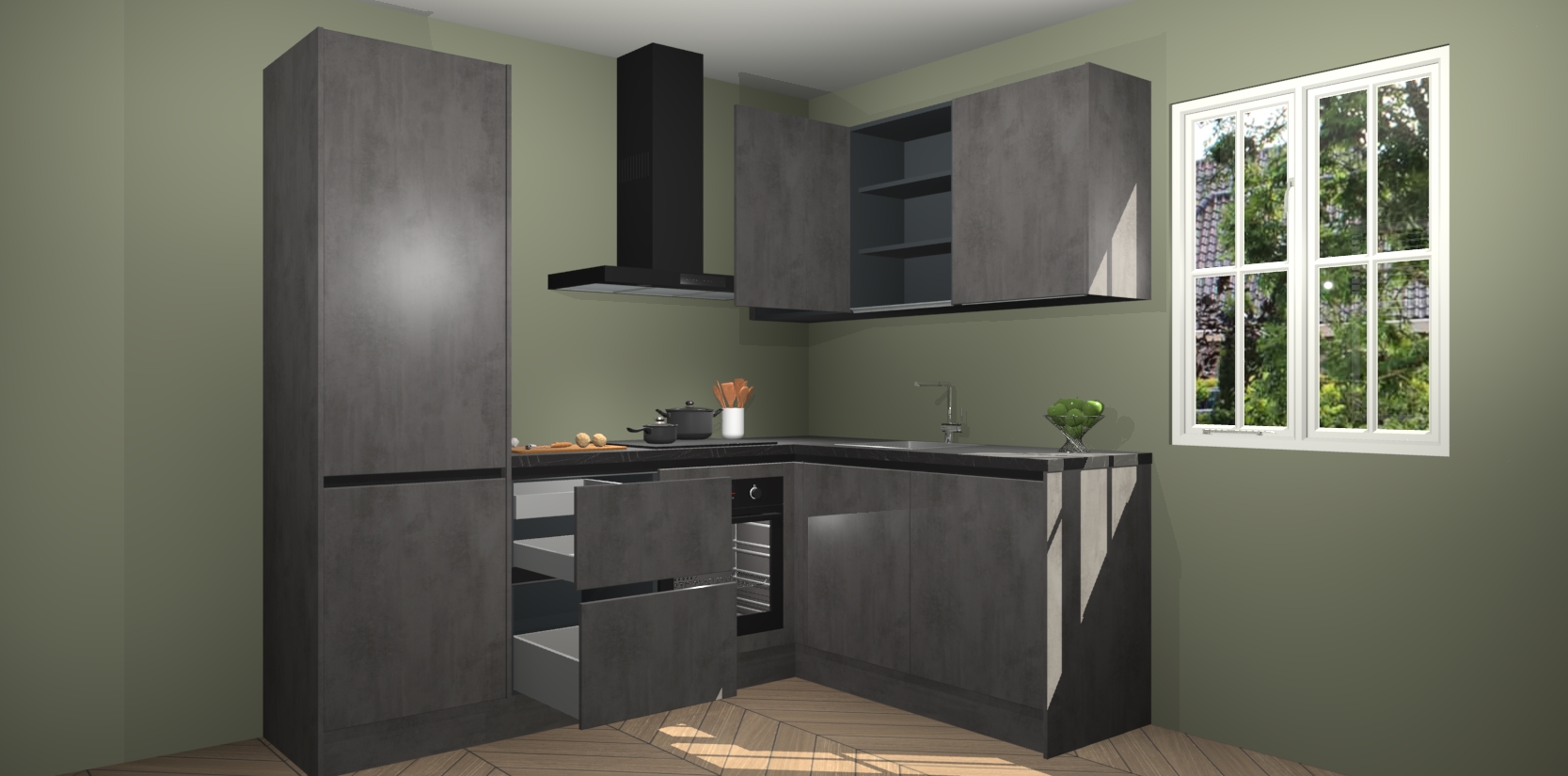 Bestellen was nog nooit zo makkelijk en we leveren met slechts 7 weken; zodra de keuken arriveert staan de kasten voor gemonteerd klaar om er alles aan te doen dat u hem gemakkelijk zelf kunt installeren! Eén ding is zeker: met de Beton Antraciet greeploze keuken Krakau slaagt u erin modischer, modernere keukens uit te rusten die tientallen jaren meegaan! Haal snel uw Beton Antraciet greeploze keuken Krakau - of u nu net begint of al 'levenservaring' hebt in de keukendroomloopbaan - want dit topmodel van onze collectie wilt u absoluut niet missen.