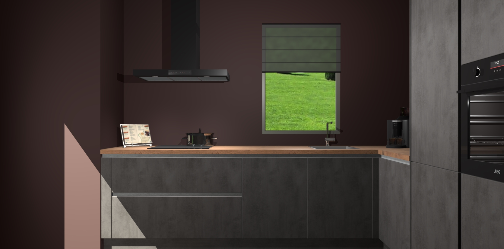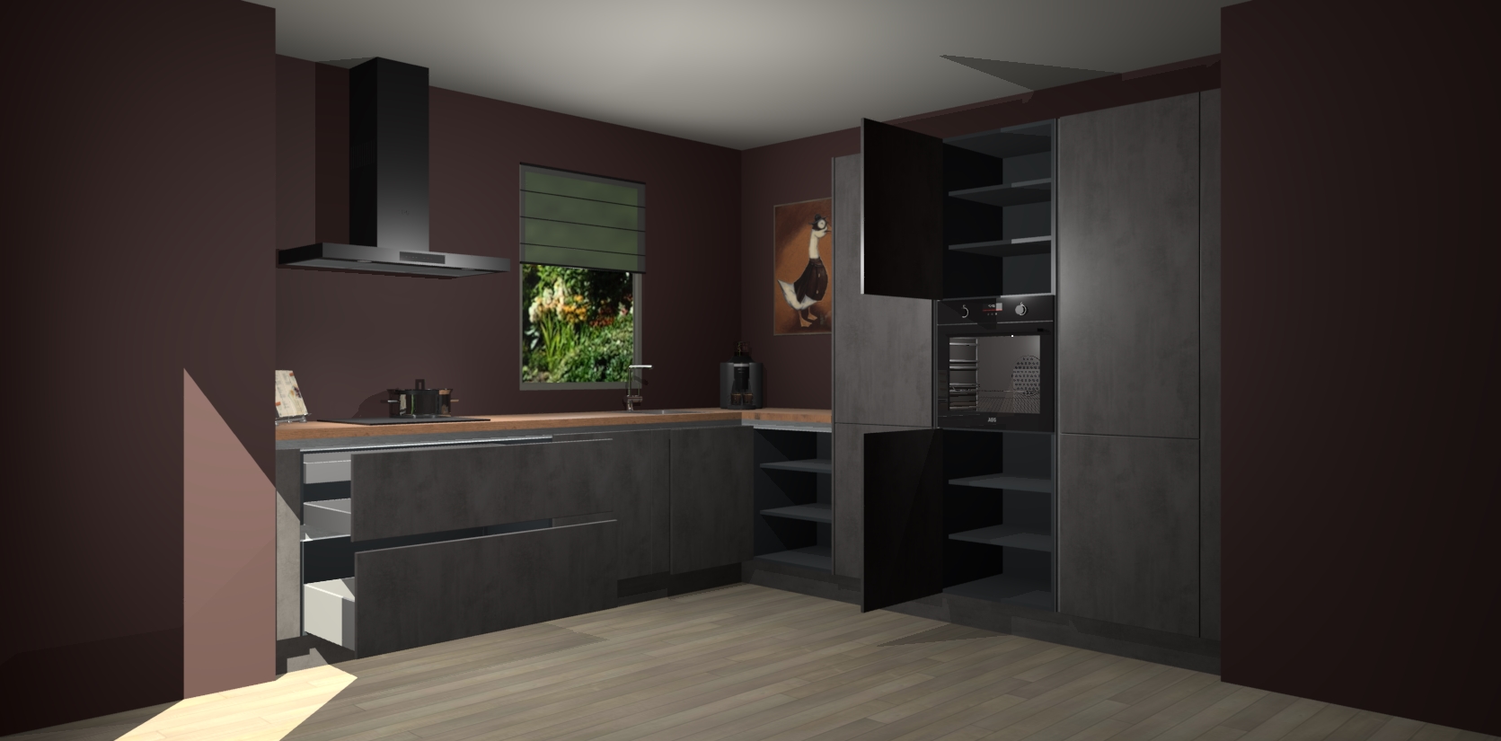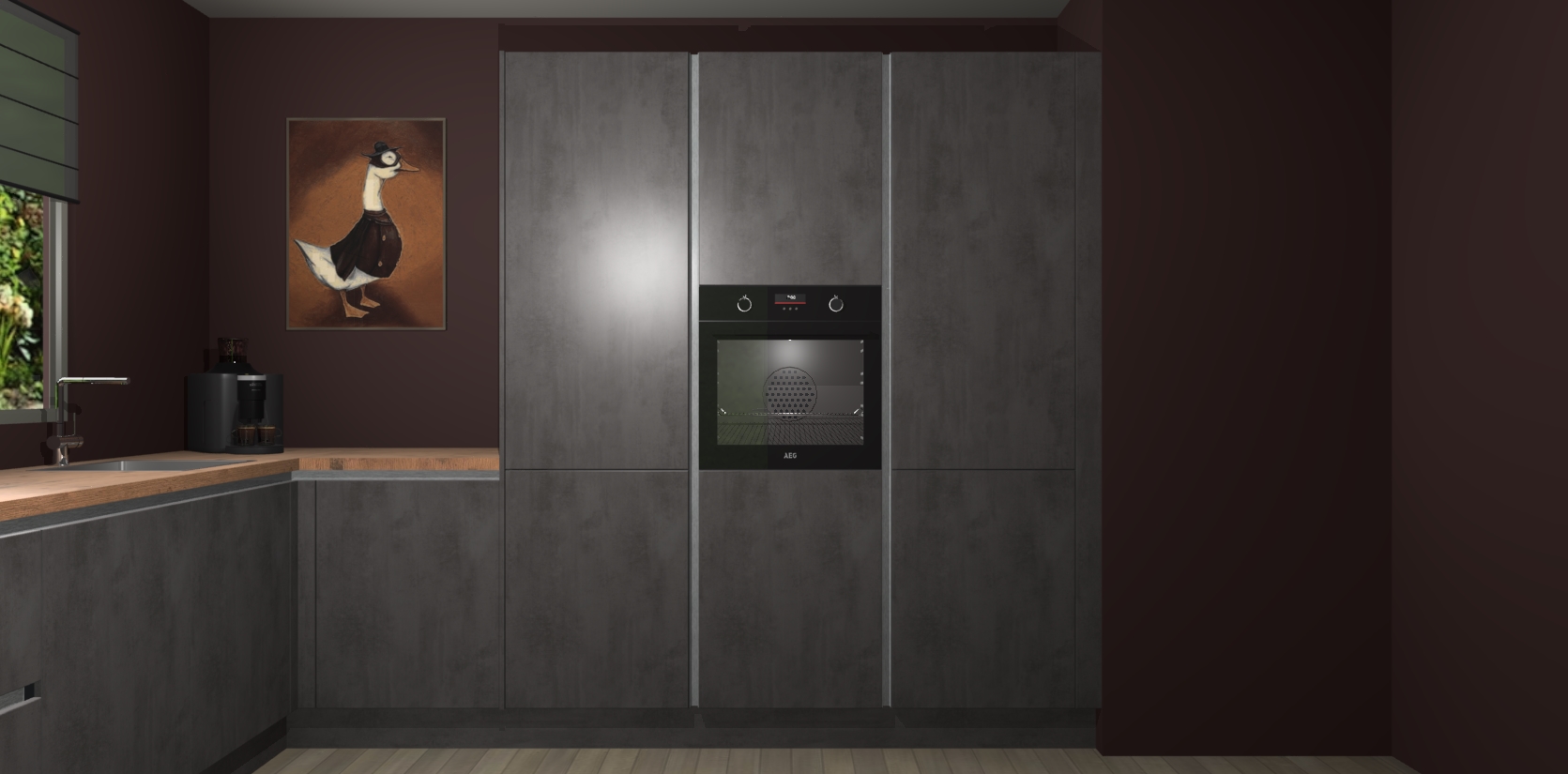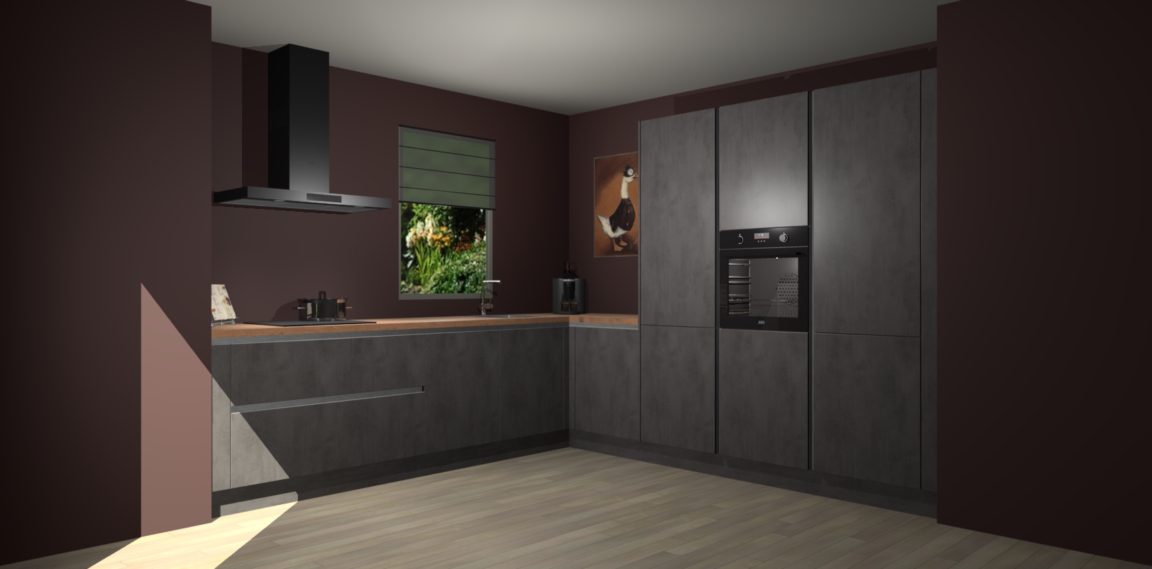 Welkom bij de Beton Antraciet greeploze keuken Laos. Deze prachtige keuken zal de komende jaren het middelpunt van de belangstelling in uw huis zijn. Uitgerust met vijf inbouwapparaten komt u nooit kookgereedschap tekort. Bovendien geeft de warme houtlook elke ruimte een uitnodigende en tijdloze uitstraling.