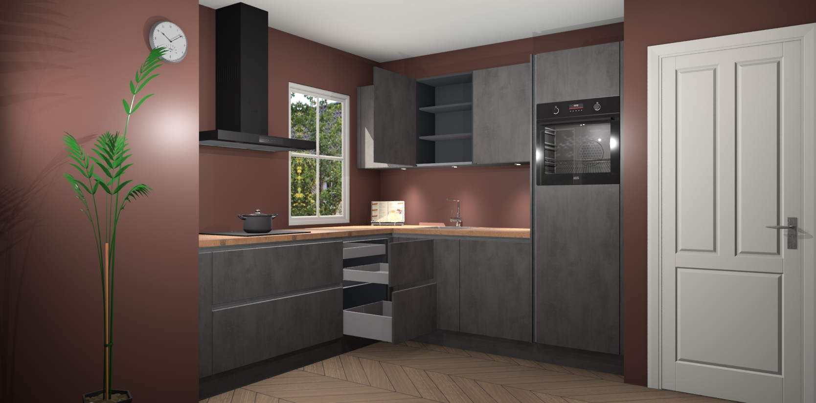 - Bij een hoekwerkblad zijn de hoeken in gevreesd en op maat gemaakt