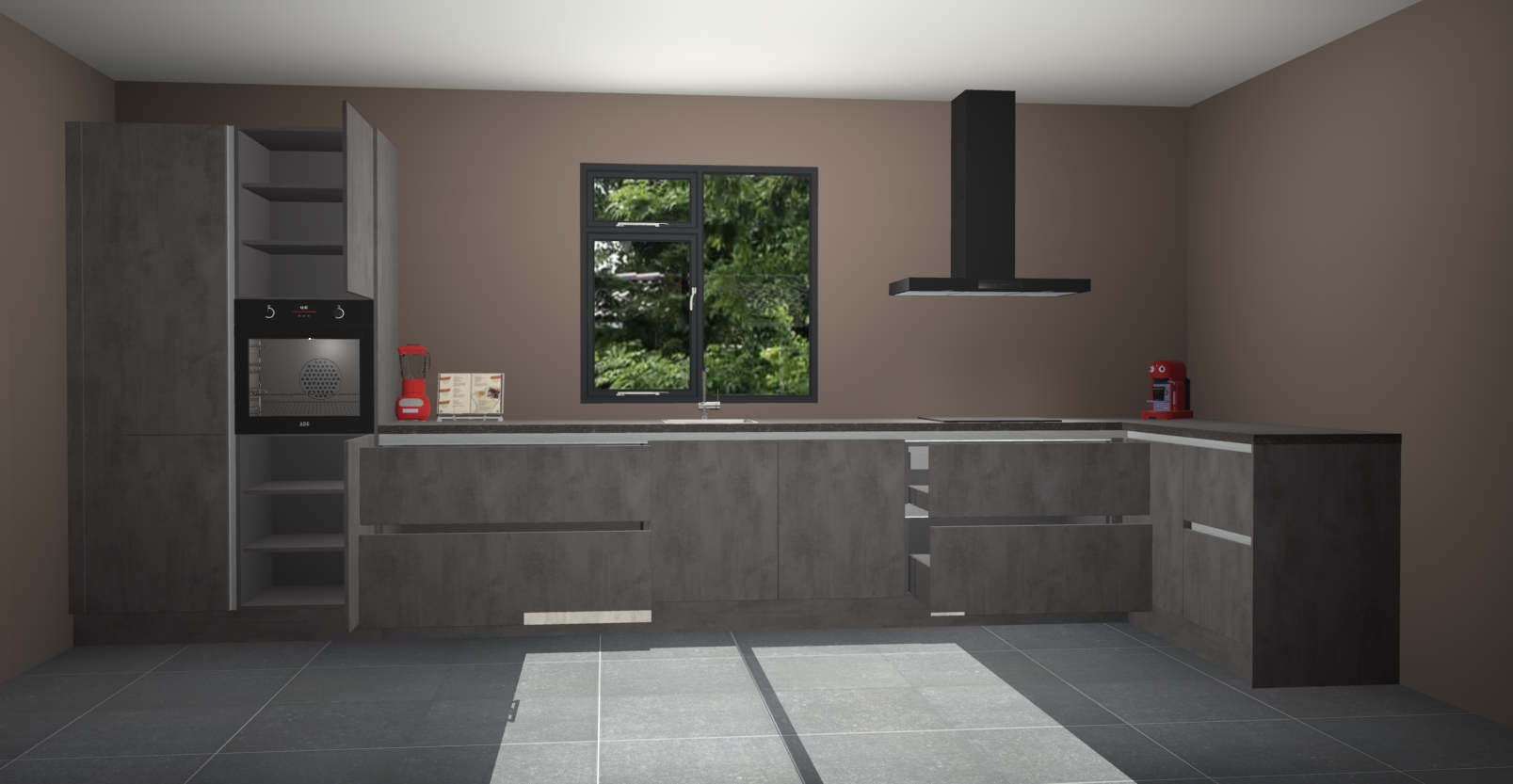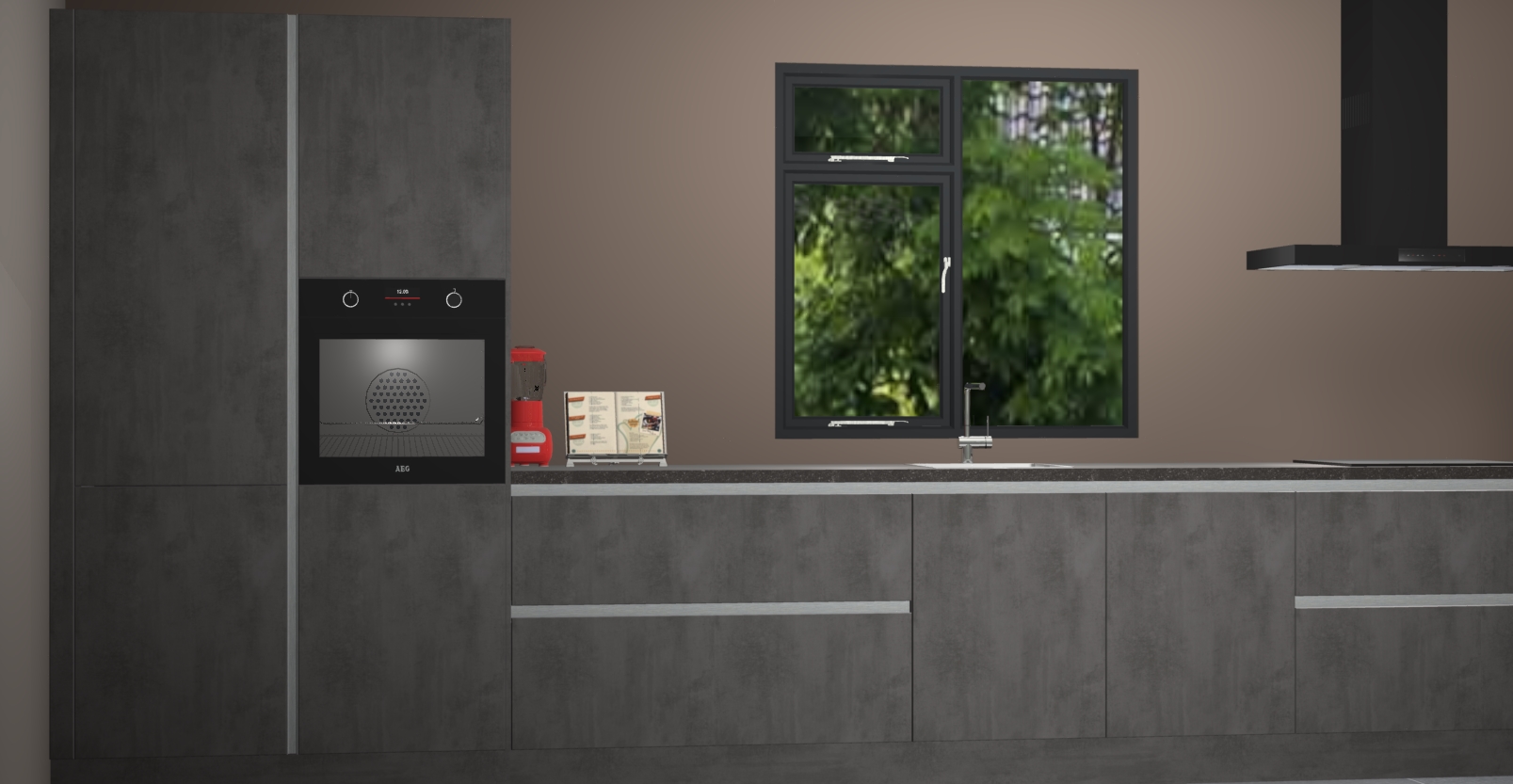 De Beton antraciet keuken Lille wordt geleverd met vijf inbouwapparaten - een oven, inductiekookplaat, afzuigkap, vaatwasser en koelkast. Maar dat is nog niet alles! Na bestelling kunnen deze apparaten eenvoudig worden geüpgraded naar premium AEG-apparatuur. Bovendien is er zelfs de optie om de oven te vervangen door een combimagnetron of uw inductiekookplaat te vervangen door een kookplaat met geïntegreerde afzuiging.