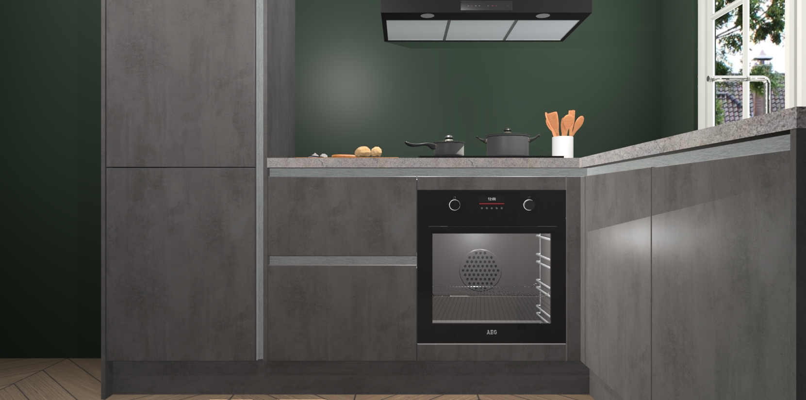Met de Beton Antraciet greeploze keuken Linz krijgt u 5 op maat gemaakte apparaten: een oven, inductiekookplaat, afzuigkap, vaatwasser en koelkast die na bestelling makkelijk worden geüpgraded naar AEG-producten. Met de zacht sluitende deuren, bent u verzekerd van eenvoudige bediening in stilte. Het kastmeubilair wordt alvast pre-assemblage geleverd waardoor u sneller met het installeren begint. Ook zijn alle deuren voorzien van softclose zodat er geen sporen op de lade blijven als u ze dicht doet. Bovendien hoeft u bij ons geen twijfels of verassingen te hebben: we hebben een vaste lage prijs waardoor u weet wat u mag verwachten bij elke bestelling.