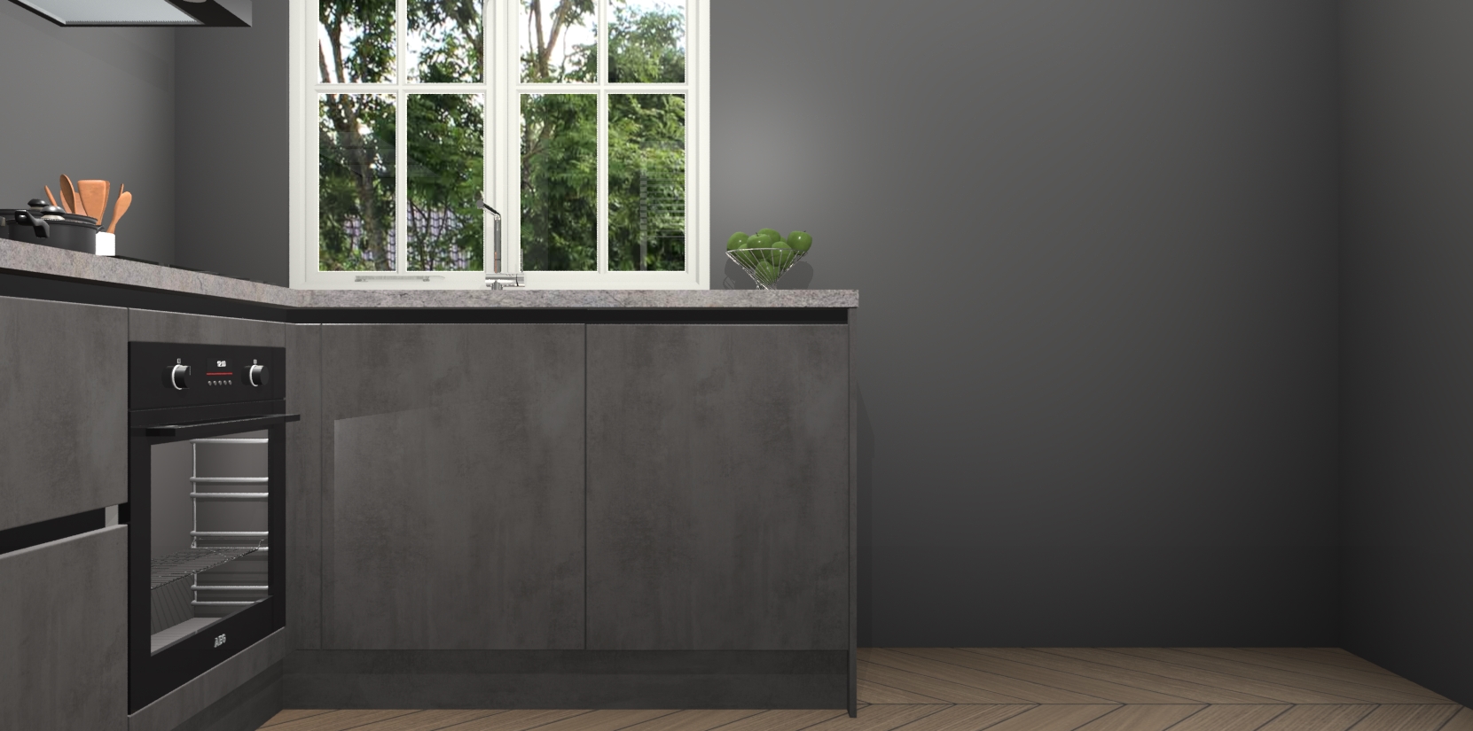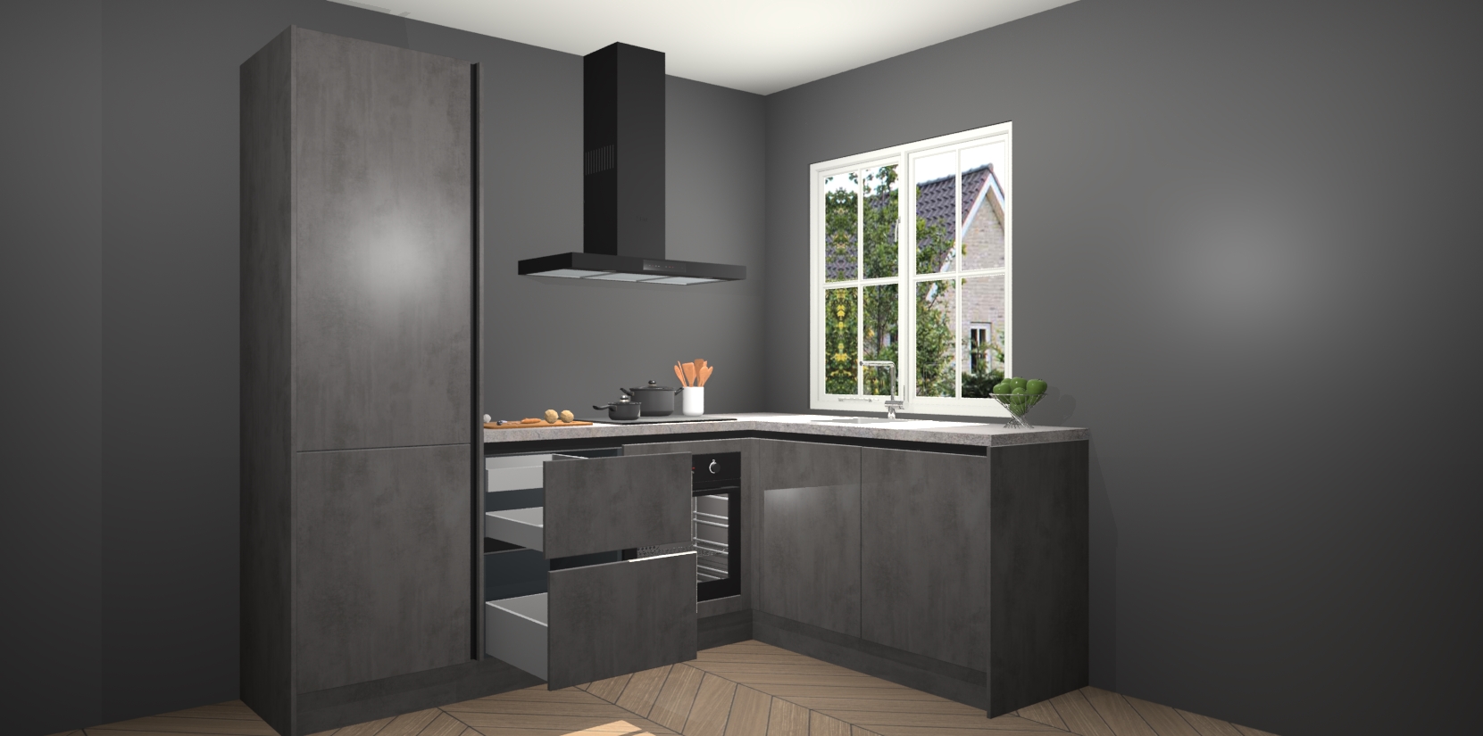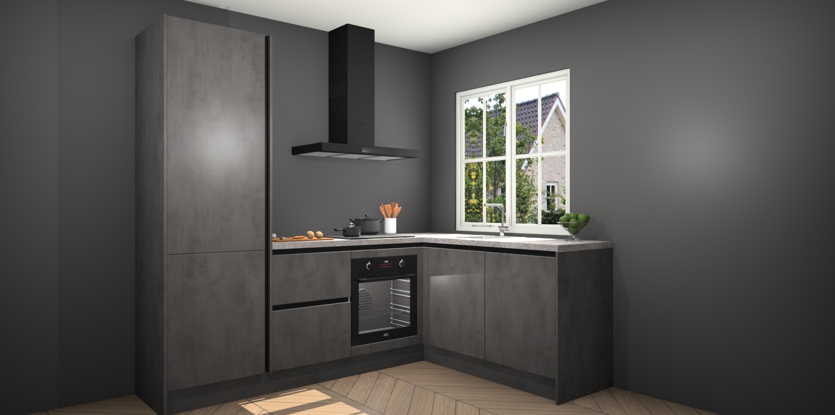 De Beton Antraciet greeploze keuken Linz is de perfecte keuze voor uw nieuwe moderne en tijdloze keuken. Ga voor moderne en tijdloze elegantie in uw keuken. De prachtige hoekkeuken biedt een verfrissende kijk op de manier waarop we ons vertrouwde keukenontwerp kunnen aanpassen in een nieuwe stijl. Één blik om alles te zien: zo mooi dat het bijna magisch lijkt.